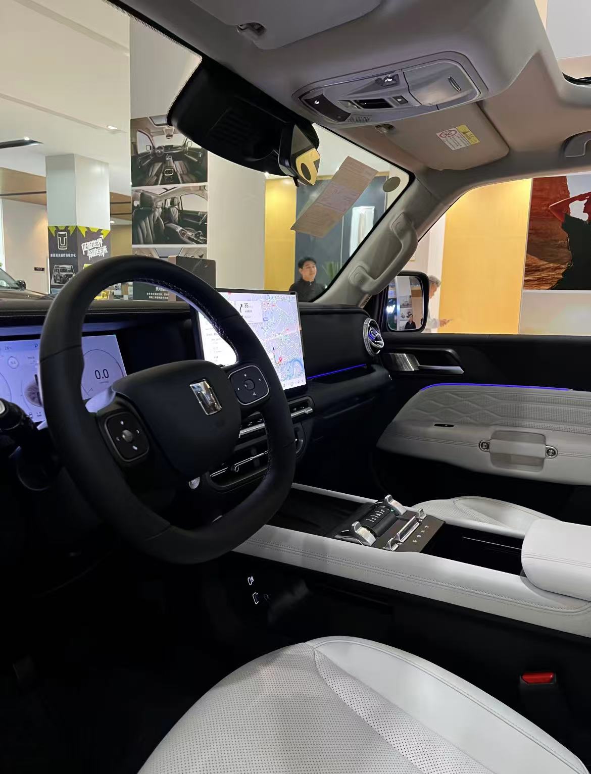 外观采用经典“方盒子”造型,圆形LED大灯搭配粗壮的横向进气格栅,搭配平直车顶线条与外扩轮眉,既有复古越野车的硬朗气质,又契合当下年轻用户对个性化的追求。车身尺寸兼顾通过性与日常使用,离地间隙高达197mm,接近角33°、离去角34°,既能轻松应对一般越野路况,日常城市停车也无压力。内饰设计同样呼应复古风格,圆形空调出风口、机械质感物理按键与12.3英寸中控屏结合,兼顾操作便利性与视觉辨识度;座椅支持多向调节,部分版本提供真皮材质与加热/通风功能,长途驾驶或越野时能提供舒适支撑。
