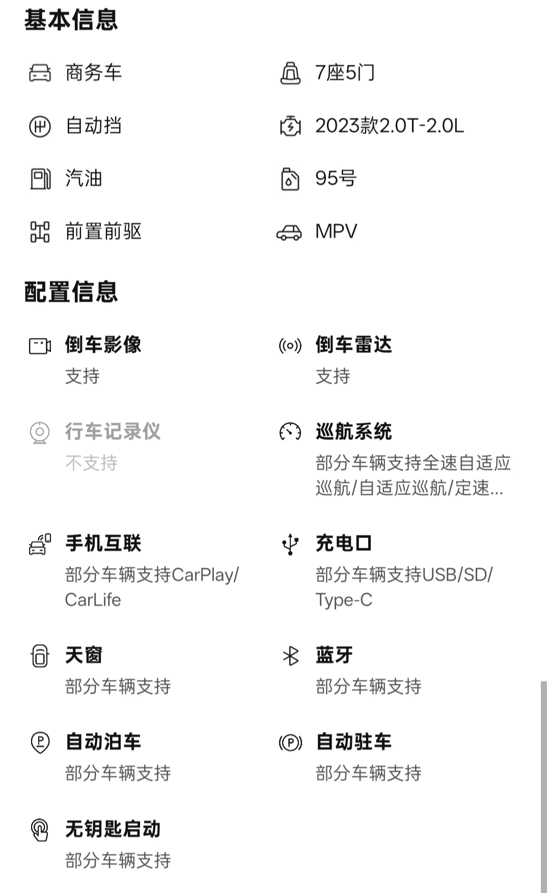 空间宽敞舒适,座椅布局灵活;动力平稳强劲,驾乘体验佳;内饰精致,配置丰富,商务出行或家庭出游皆为优选。