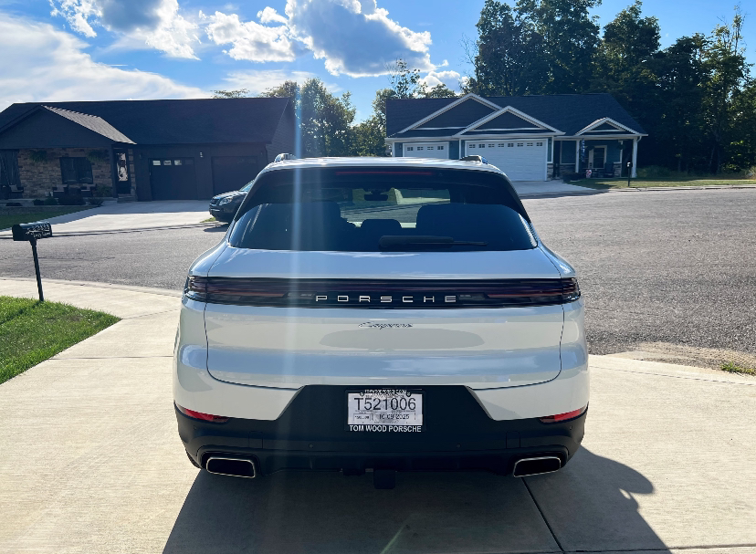 2025款卡宴延续保时捷家族设计,前脸采用全新矩阵式LED大灯,前保险杠立体,进气口加大。车身侧面有溜背式车顶,腰线上扬,搭配大尺寸轮毂。尾部是贯穿式3D立体尾灯,后包围重新设计,Turbo车型标配双边四出排气。