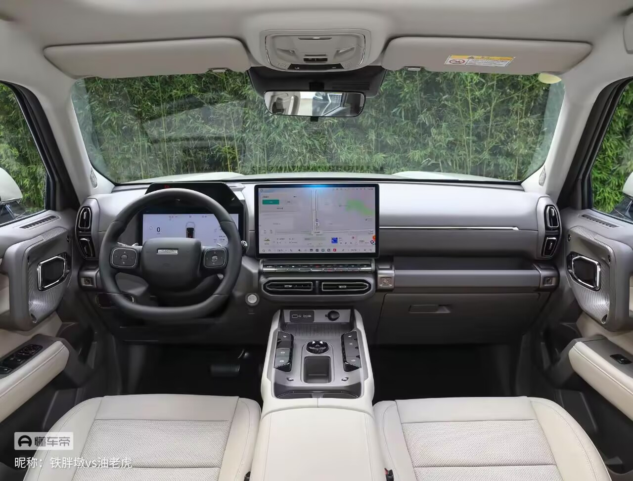 内饰配置:内饰采用全新家族化设计,有双幅式多功能方向盘和电子怀挡,中控区域简洁。配备14.6英寸中控大屏,内置Coffee OS 3.0智能座舱系统。内饰采用米色配色,大量软包工艺,质感出色。此外,还有HUD抬头显示、50瓦手机无线快充、全景天窗、二排手动遮阳帘等配置。