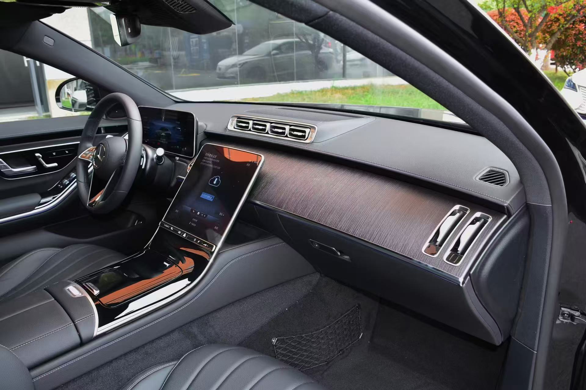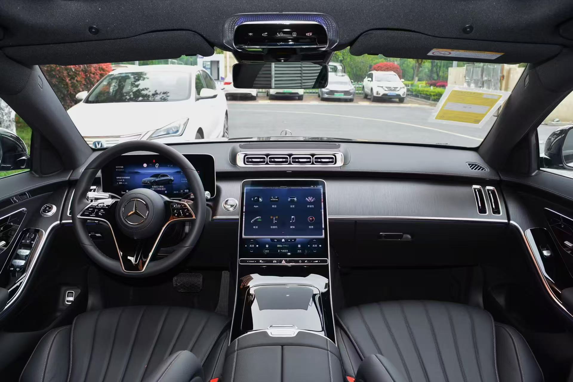 内饰与配置:中控配备12.8英寸OLED中央显示屏与12.3英寸3D数字仪表屏,可与后排7英寸MBUX平板电脑及双11.6英寸后排娱乐屏实现多屏联动。搭载MBUX智能人机交互系统,支持多区识别的“读心语音助理”,前排还有带实景穿越功能的HUD平视显示系统。