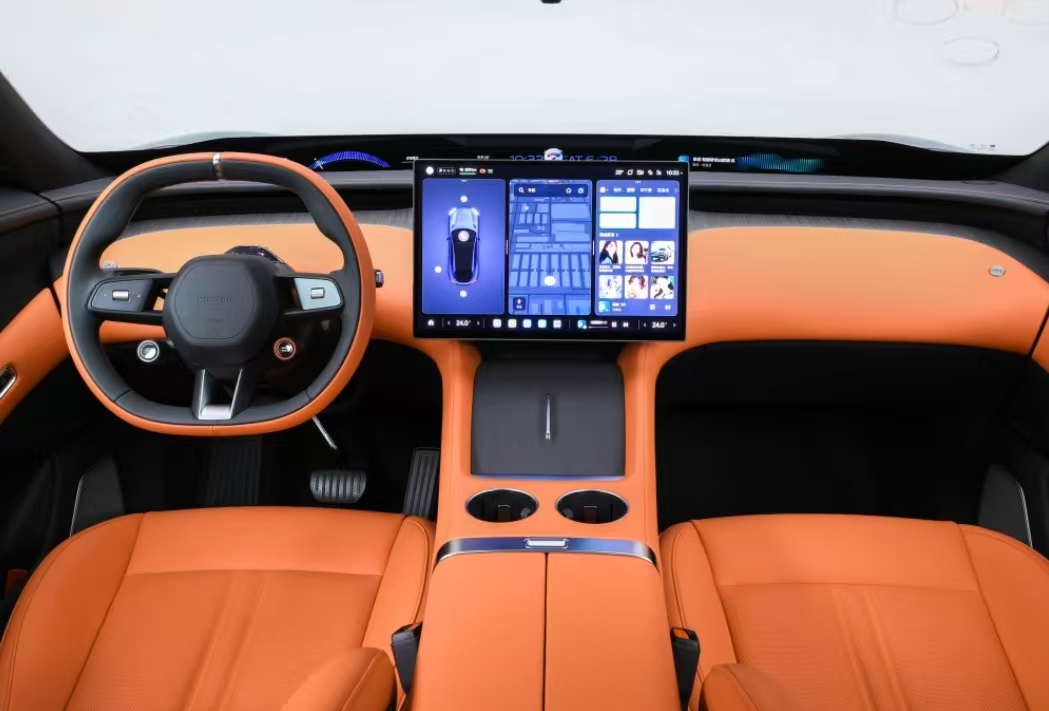 内饰设计:采用环抱式座舱布局,有松石灰、珊瑚橙等4款内饰颜色。配备17m² OEKO - TEX一级认证软包覆、Nappa真皮座椅。前排可选双零重力座椅,后排座椅支持135°电动无级调节。