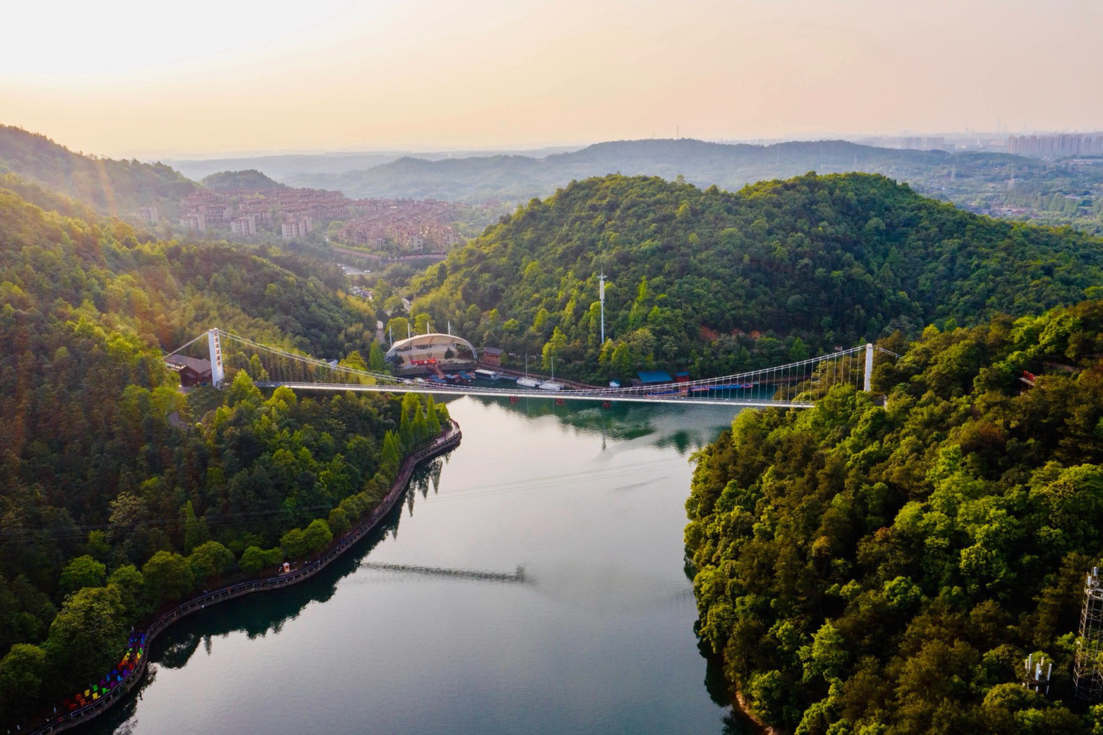 位于亚热带森林乐园区域,超大号玻璃观景平台,惊艳亮相,湖上之岛,天空澄澈,无需滤镜,自带仙气。是湖南省最大的玻璃观景平台。周围还有悬崖秋千供你游玩(自愿参与,费用自费)索道而下来到森林漫步,在这里脚踏漫步车呼吸森林的新鲜空气,感受宁静的气氛。