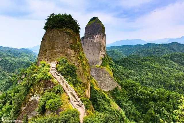 沿石田小溪溯源,经佛顶山,就可见一头仿佛正在原野驰骋的大骆驼--“【骆驼峰】”。它由四座石峰组成头、躯、脊、尾,错落有致,形象非常逼真。骆驼身长273米,高187.7米。骆驼峰旁有“【蜡烛峰】”,形似一支红色蜡烛直插云霄,该峰西南侧,高217.8米,周长400米,顶尖身圆,四周陡崖,挺拔巍峨,是丹霞地貌少有的奇特景观。在蜡烛峰东面陡崖脚下有一条巨大天然缝隙,长100米,深50米,宽0.4--1.8米,上下岩石如刀削一样平整,形似一条巨龙向东方张开倾斜40度的巨口。(活动时间:约3小时)