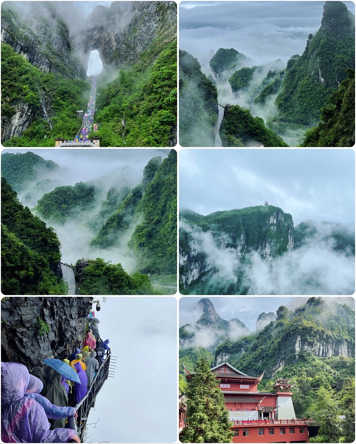 在“水绕四门”乘坐天梯只需要2分钟即可到达。乘坐电梯时可以透过玻璃欣赏张家界一大绝景——神兵聚会。