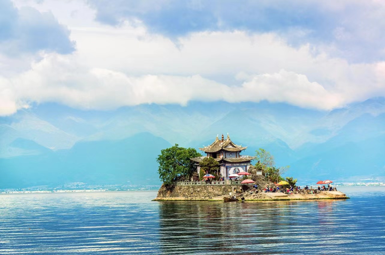 乘车前往小普陀大约行驶30分钟。小普陀岛虽然小,但名气很大,在介绍大理的画册中少不了有它。在小普陀上看苍山洱海,仿佛置身在白首老者托起的银盘之中,心胸格外开阔。(30分钟)