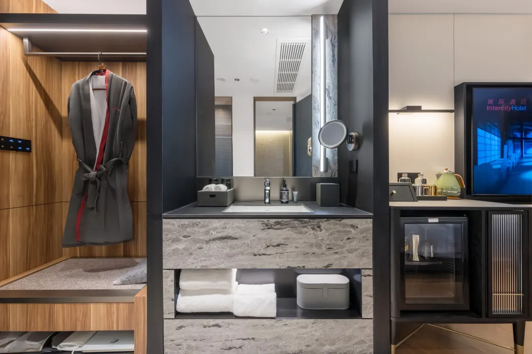 酒店从品质、高效率的德式基调出发,打造出专为商务休闲旅客细心设想的待客之道。酒店讲究简约时尚的设计,舒适便捷的设施与精致的贴心服务,客房内部皆采用高智能设计,德龙热水壶,比克全智能控制,电子窗帘以及全床舒达床垫给客人较好的舒适感。并拥有多元优质配套实施。具有德国风情的现代餐厅“好味"结合了季节性以及德式风味主题,经典的德式酒吧提供优质的德国进口饮料酒水,加上传统的HappyHour元素融入其中,必定是让顾客流连忘返的优质社交空间。环境优雅的行政酒廊“好聚”是谈生意的佳选。音乐舒缓,周到的服务。轻饮食的复合式休闲空间,让宾客在紧凑忙碌的行程中游刃有余并随时补充能量。“好物"大堂吧”精心为您准备了多种美味的咖啡,愿您在这喧闹的城市中享受片刻的宁静。能提供高端贴心的服务,给商务客人小憩以及小酌的片刻有限。另外为商务宾客特别设计的健身房“好体",为住店宾客提供私享健身中心,更能舒缓唤醒身心,是健身及放松的理想私人空间。“好静”多功能自助免费洗衣房,采用高端品牌顶配商用洗衣烘干设备,高温+紫外线消毒保障卫生安全,洗衣烘干分开不伤衣物,为您的出行提供无忧保障。酒店为爱城市、爱旅行的每一-位宾客, 在快节奏的忙碌生活之中,找到- -席心灵休憩之所,重新换活能量,在尽情去探索大千世界之间,同时提升自己的生活状态。