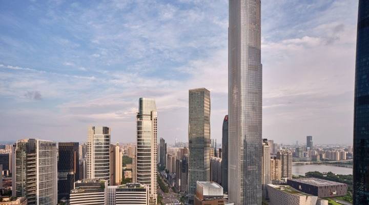 广州瑰丽酒店位处于新近开幕的周大福金融中心。 瑰丽酒店精心诠释尊崇不凡品味,酒店建筑由Kohn Pedersen Fox Associates设计,成为城市新名片。垂直的服务式公寓拥有数个户外露台,平添宁静安逸氛围。酒店电梯格外引人注目,每秒 20 米的上升速度居全球首位,仿佛瞬间到达顶楼。内部设计由多伦多室内设计事务所Yabu Pushelberg担纲,于当代风格基础上融入一系列中式艺术品、建筑主题和本地材质,营造令人耳目一新的现代典雅居停。
