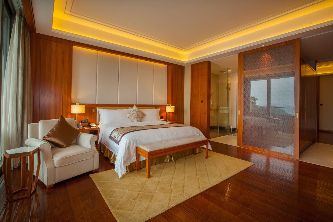 万山岛风光旖旎,绚丽斑斓,以现代中国风建筑理念构建的格力万山精品酒店正隐落于苍翠的半山之间。酒店依山势而建,错落有致,与水色山光融为一体。