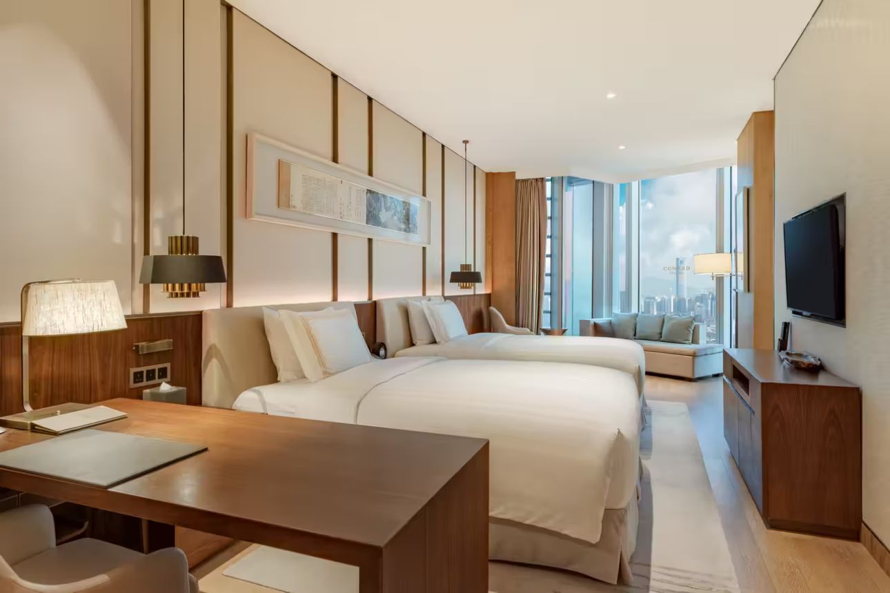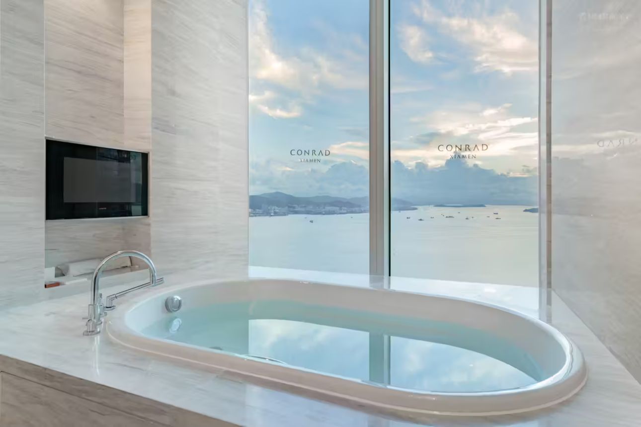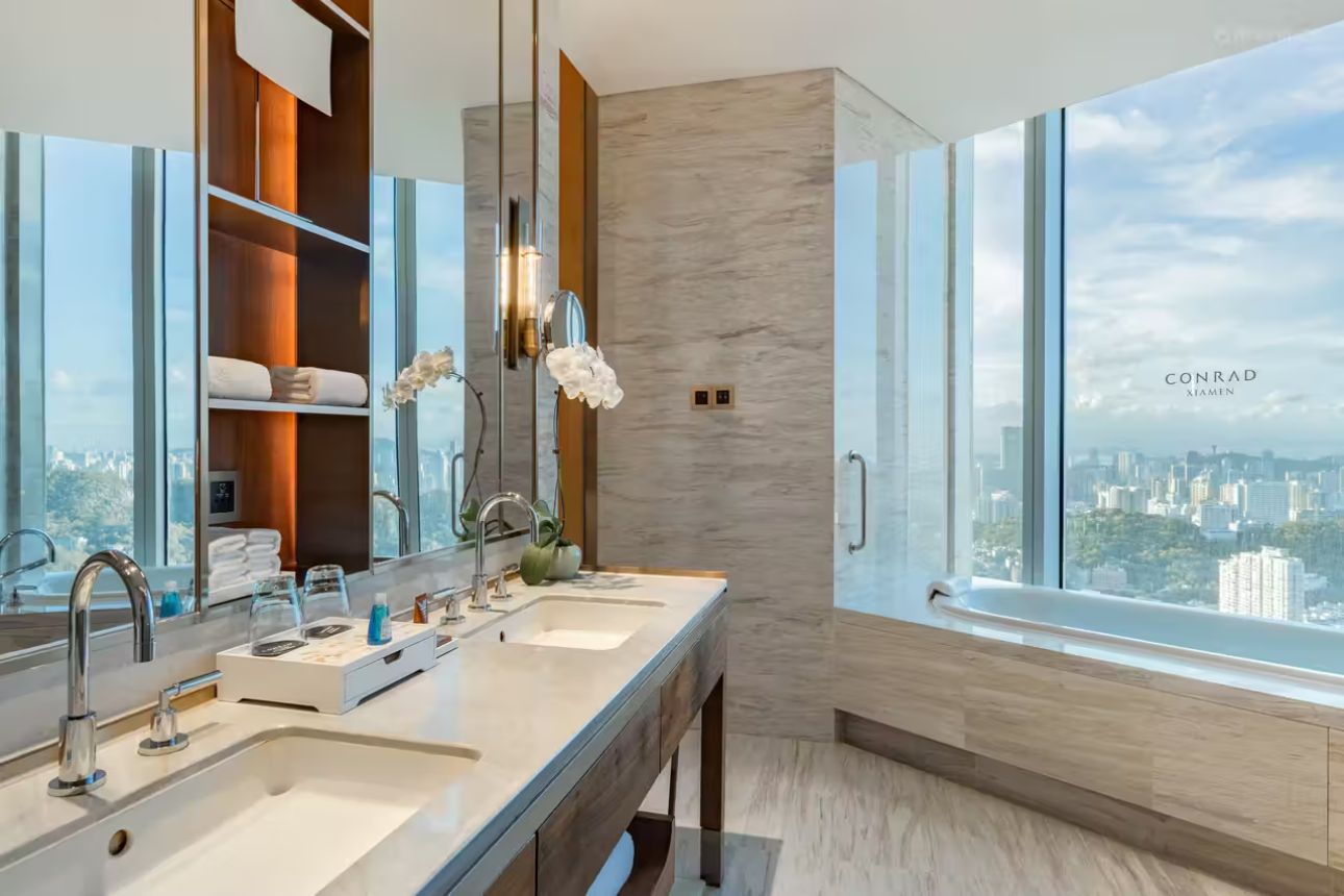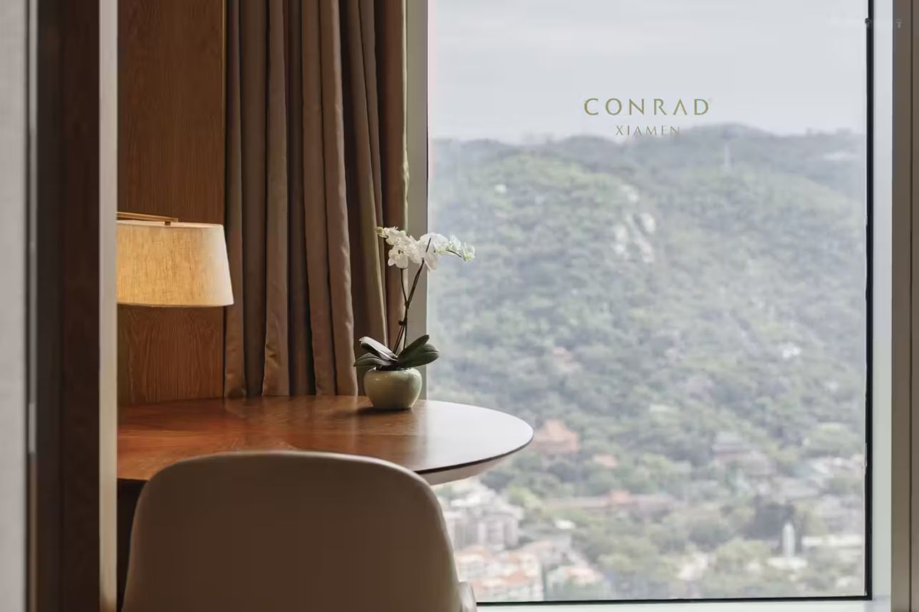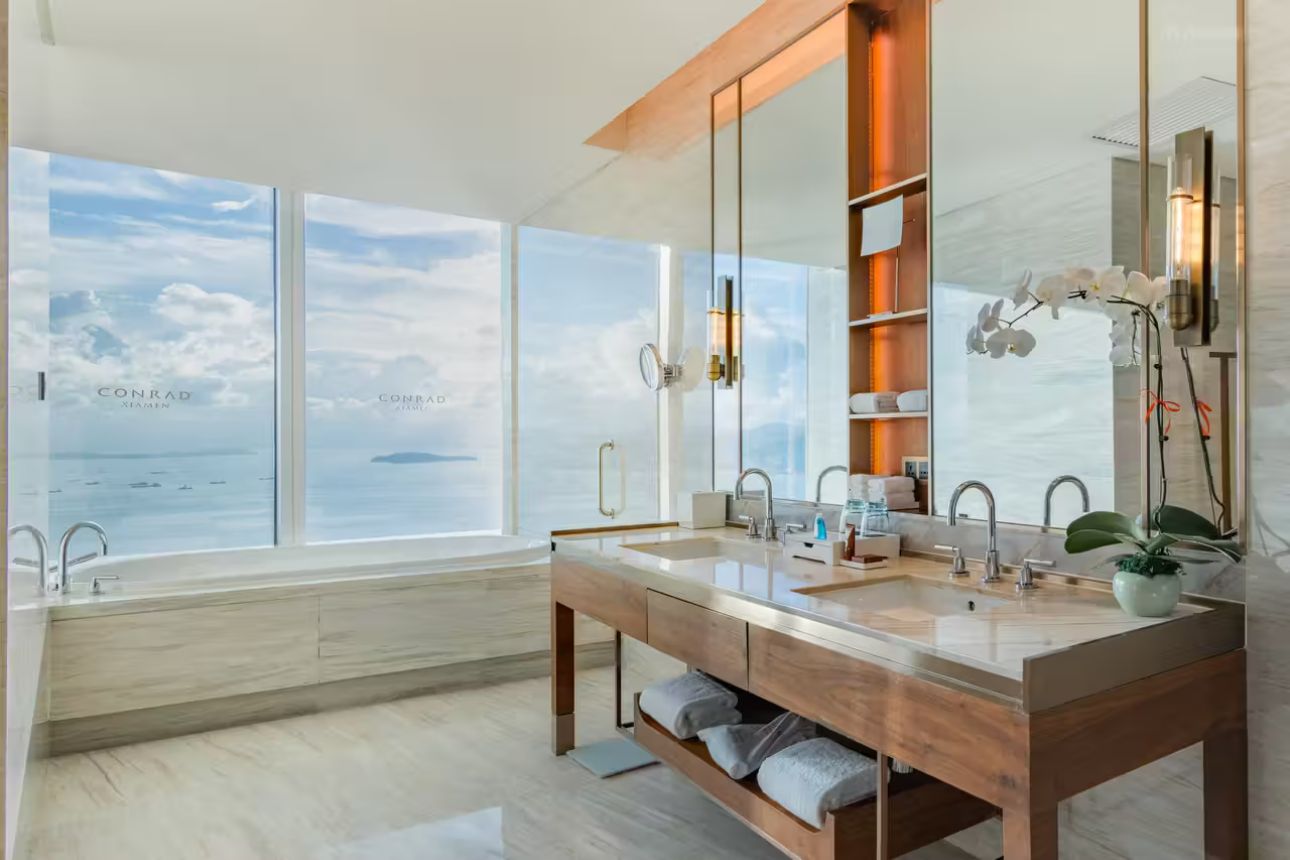 客房类型:厦门康莱德酒店拥有多种客房类型,包括豪华行政双床房和康莱德套房等。客房内配备先进的设施设备,如全景落地玻璃窗、休闲区、步入式衣帽间等,为宾客提供舒适的住宿体验。