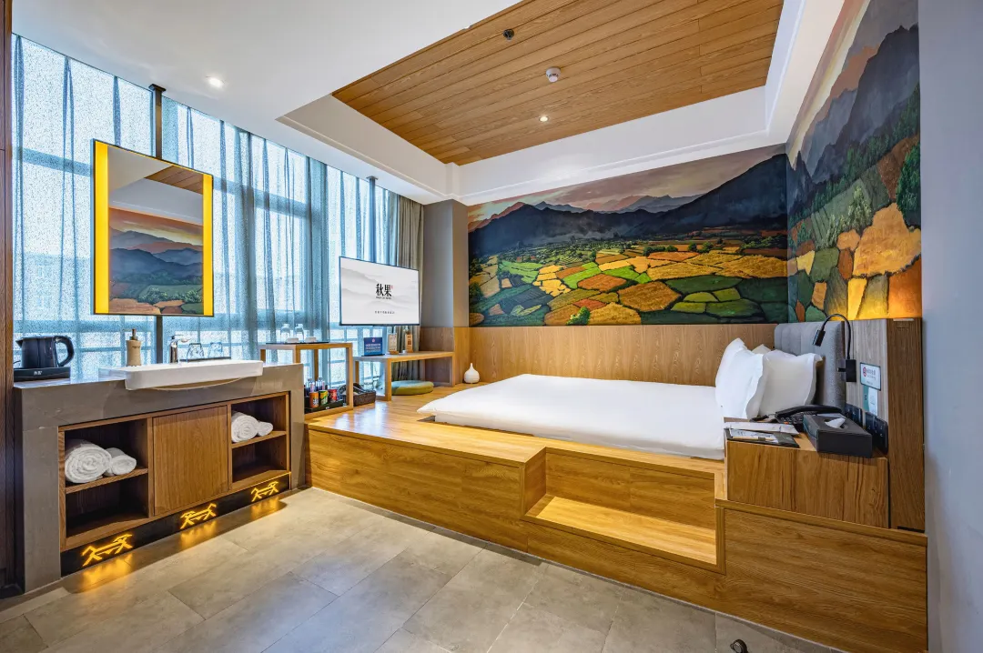 精致的人文的景观建筑为水泥森林增添一道亮丽的风景,不同主题的大幅手绘油画精品客房静雅舒适;首层茶书吧自然静谧;雍米女性楼层温情脉脉;秋果婉若繁华喧嚣都市中的世外桃源,让您放松、惬意。