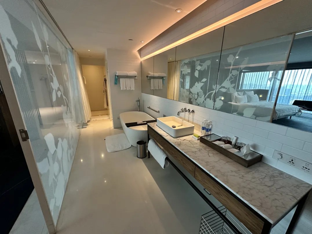 透过巨大落地窗可欣赏城市夜景,距国际机场仅十分钟车程。