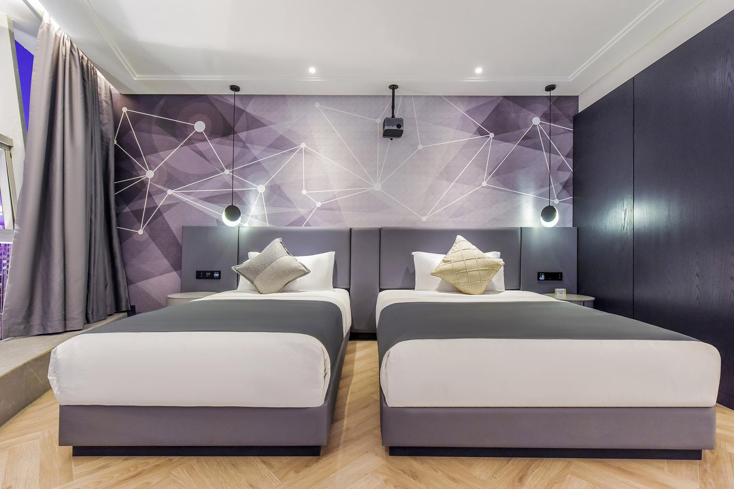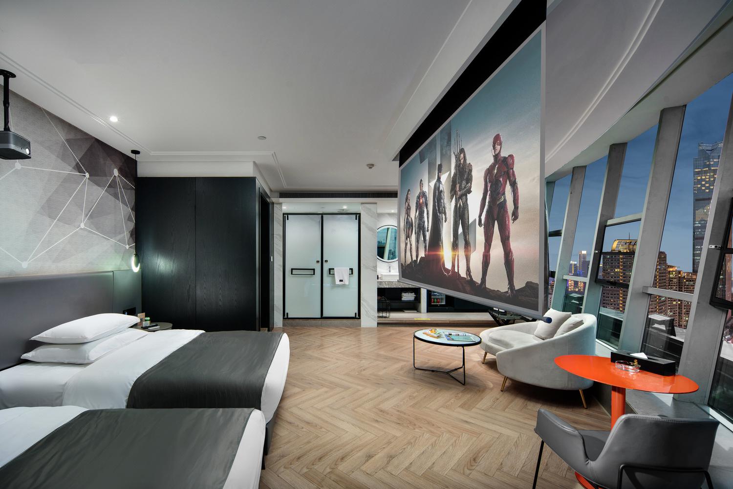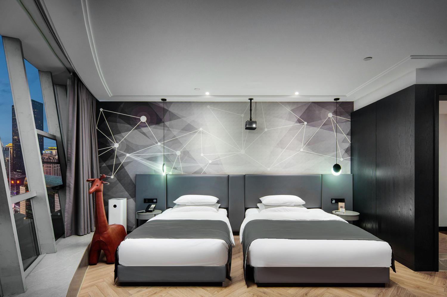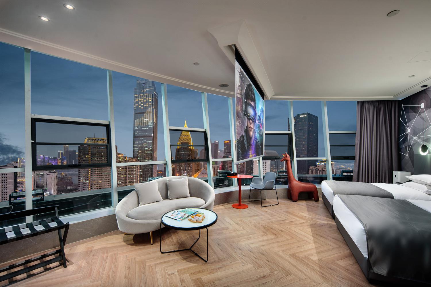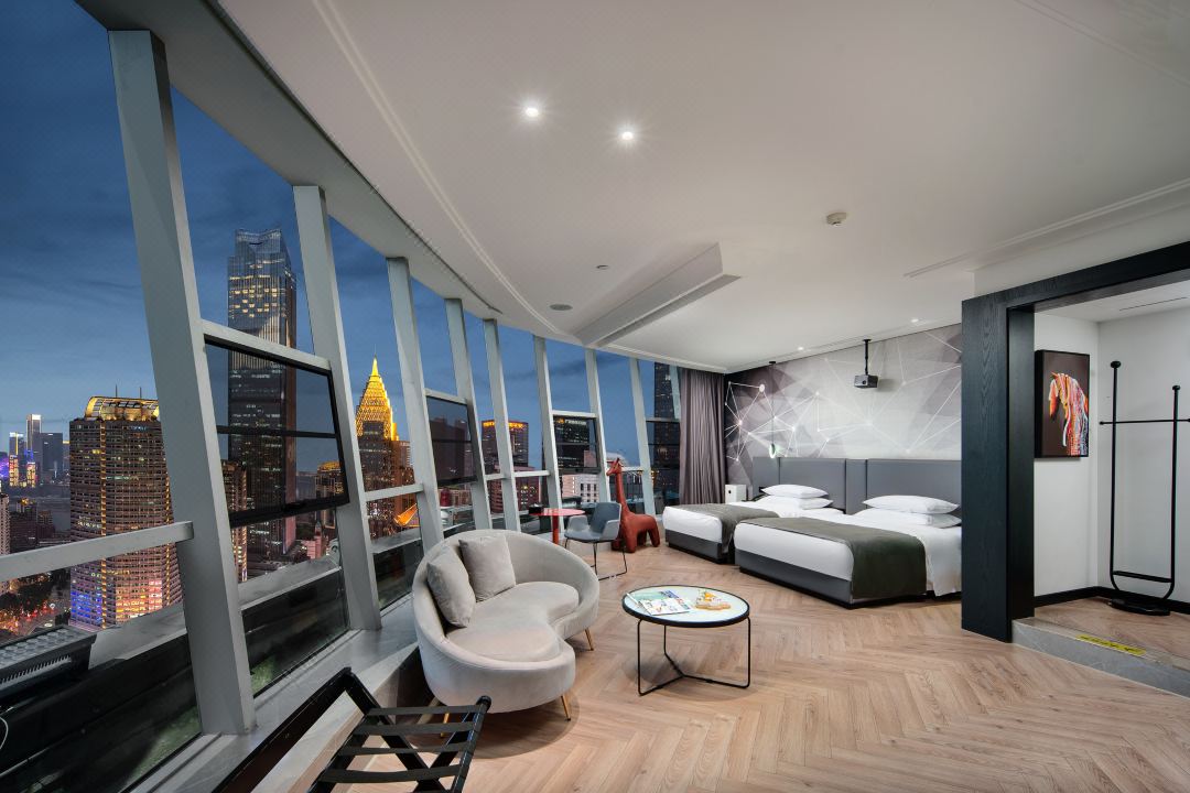 便利设施:空调,书桌,多种规格电源插座,110V电压插座,遮光窗帘,自动窗帘,备用床具,房内保险箱,床具:鸭绒被,床具:毯子或被子,衣柜/衣橱,开夜床,客房WIFI,空气净化器,熨衣设备,衣架,针线包,休闲椅,茶几,220V电压插座,沙发卫浴设施:拖鞋,24小时热水,吹风机,牙刷,洗发水,浴室放大化妆镜,护发素,香皂,浴帽,浴巾,浴衣,私人浴室,私人卫生间电器多媒体:有线频道,液晶电视机,智能门锁,电影服务,音响食品饮品:电热水壶,冰箱,用餐区,茶包,软饮,水果,小食,瓶装水室外景观:城景,江/河景,山景,地标景洗浴用品:毛巾其他:多张床:1张双人床1.5米和1张单人床1.2米;儿童及加床: 该房型允许携带儿童入住。13岁及以上客人按成人收费 床铺:每间客房限制6-12岁儿童,和成人共用现有床铺超过入住人数时,可能涉及额外费用,收费规则如下该房型不提供加床。该房型不提供加婴儿床。 云幕180度环幕江景亲子房「环幕山城江河美景+智能客控+影院级放映机 」45平米 有窗 47层 |