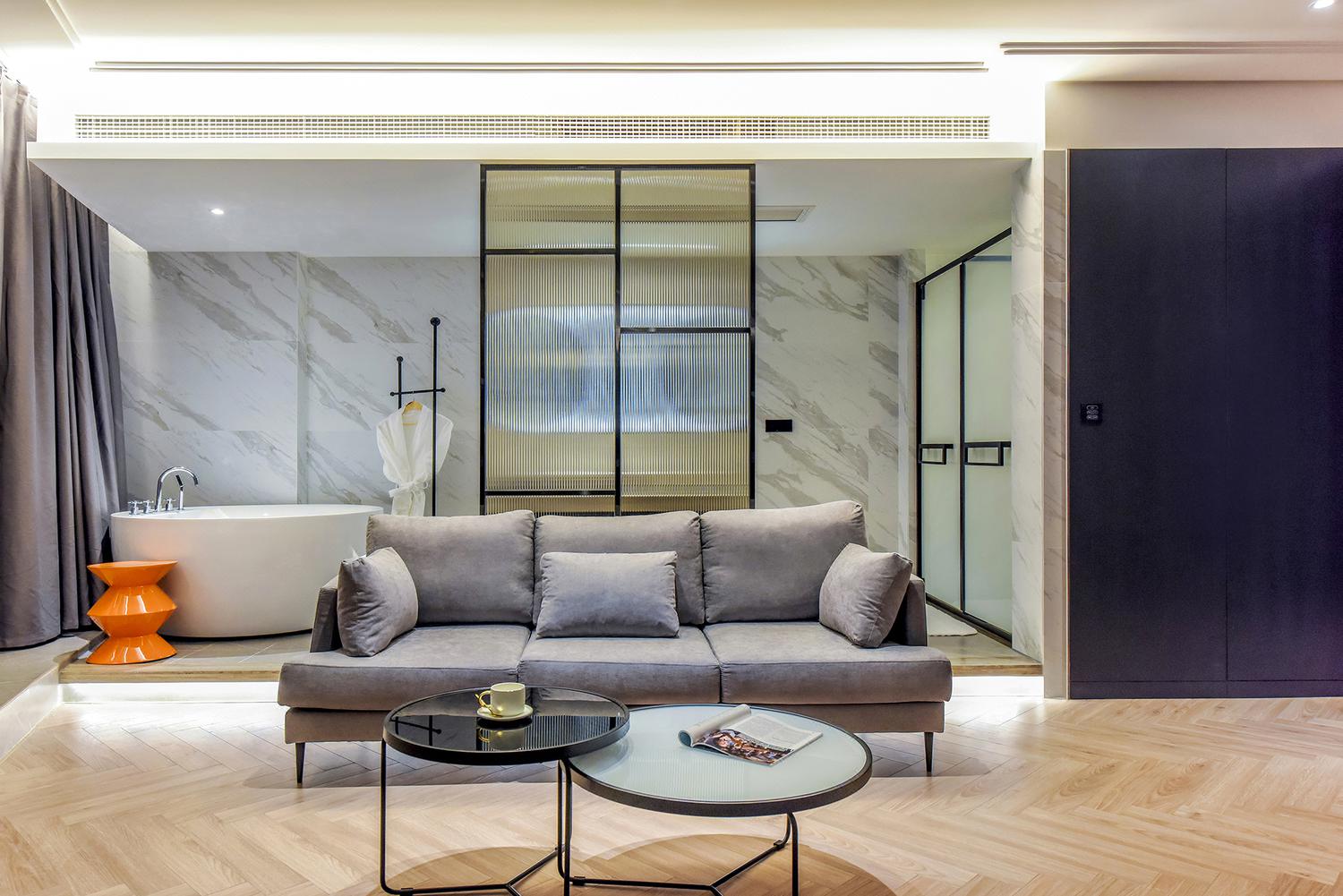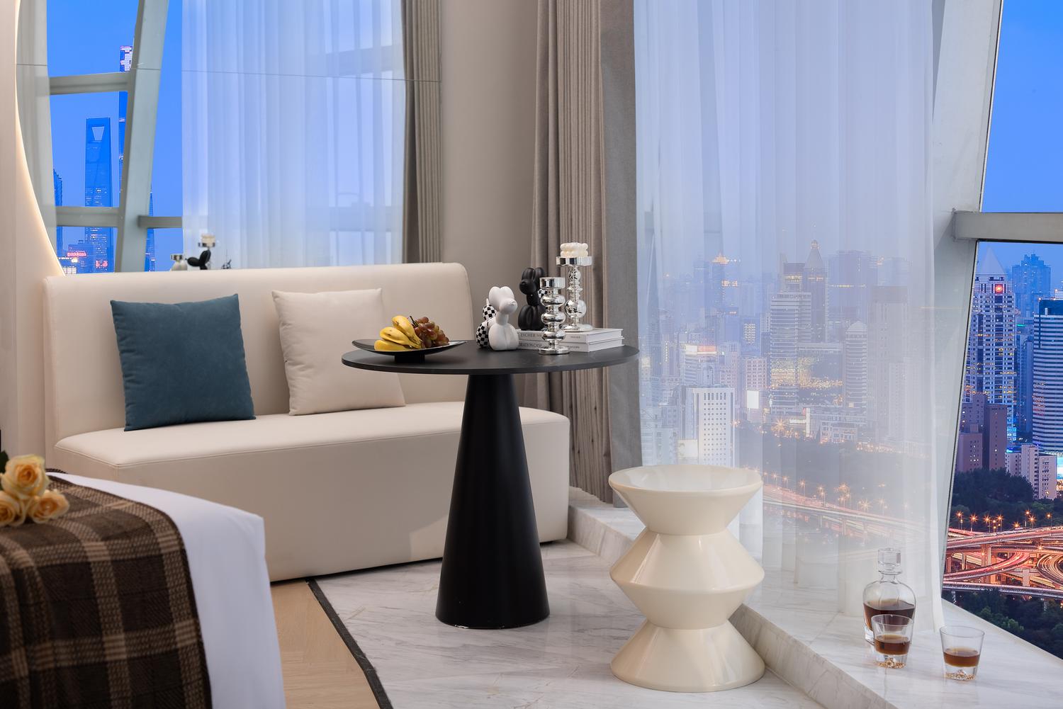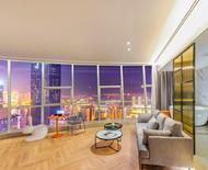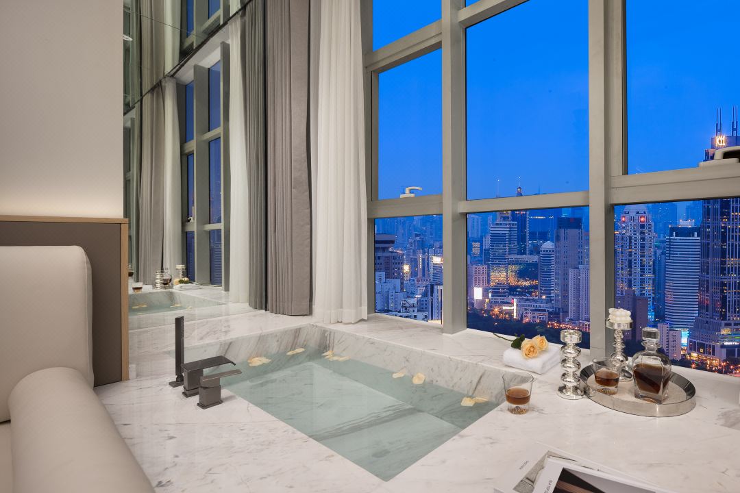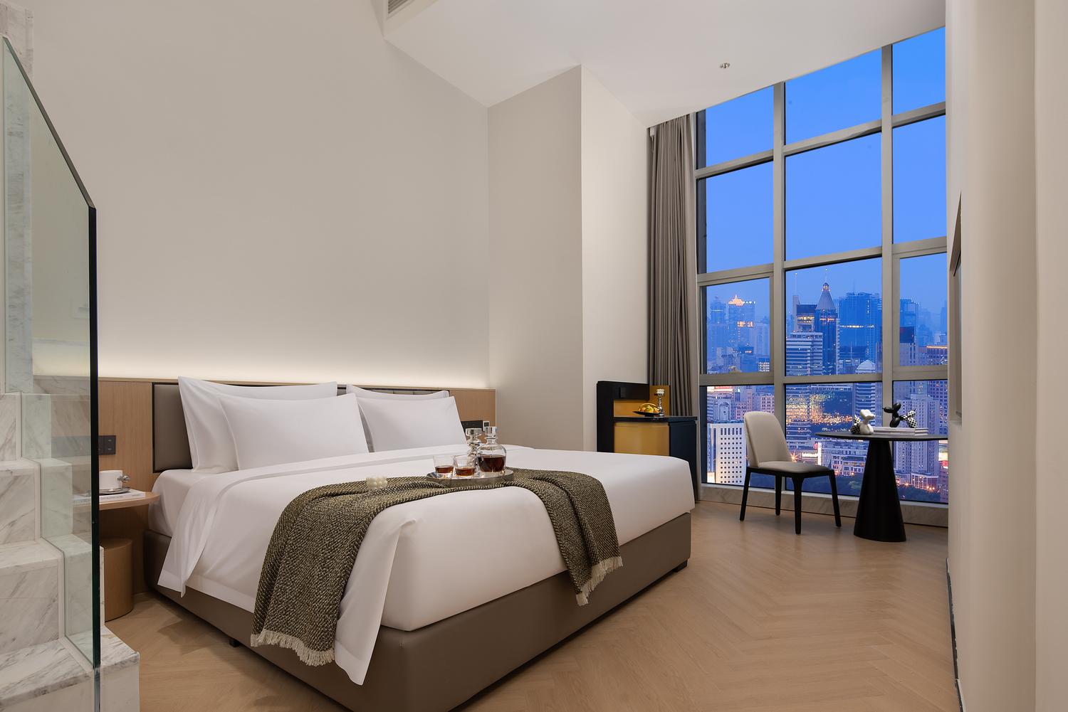 便利设施:空调,书桌,多种规格电源插座,110V电压插座,遮光窗帘,自动窗帘,备用床具,房内保险箱,床具:鸭绒被,床具:毯子或被子,衣柜/衣橱,开夜床,客房WIFI,衣架,针线包,休闲椅,茶几,220V电压插座,沙发卫浴设施:拖鞋,24小时热水,吹风机,牙刷,洗发水,浴室放大化妆镜,护发素,香皂,浴帽,浴巾,浴衣,私人浴室,私人卫生间电器多媒体:有线频道,液晶电视机,智能门锁,电影服务,音响食品饮品:电热水壶,冰箱,用餐区,茶包,软饮,水果,小食,瓶装水室外景观:城景,江/河景,山景,地标景洗浴用品:毛巾 loft 跃层 | 云端180度江景大床套房「跃层大空间+揽江日落+浪漫浴缸+智能智控」 45平米 有窗 48层 |