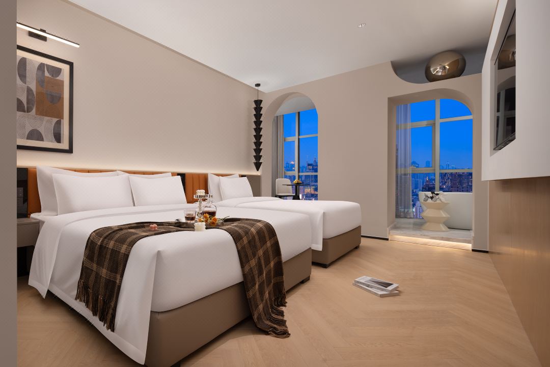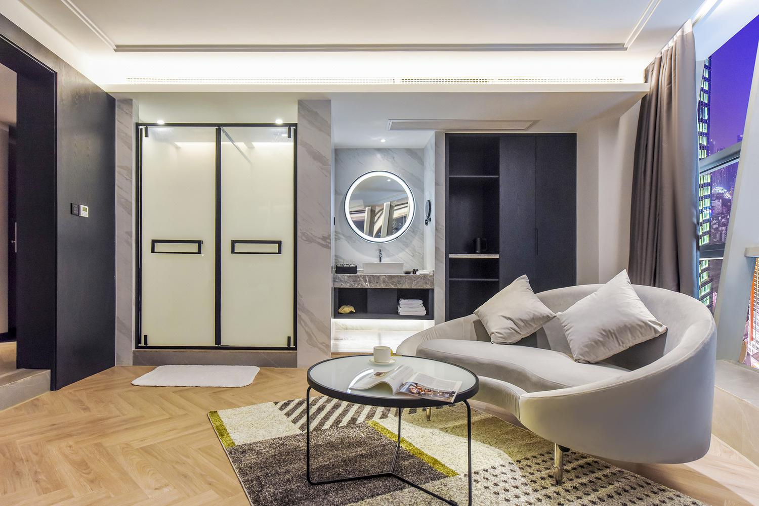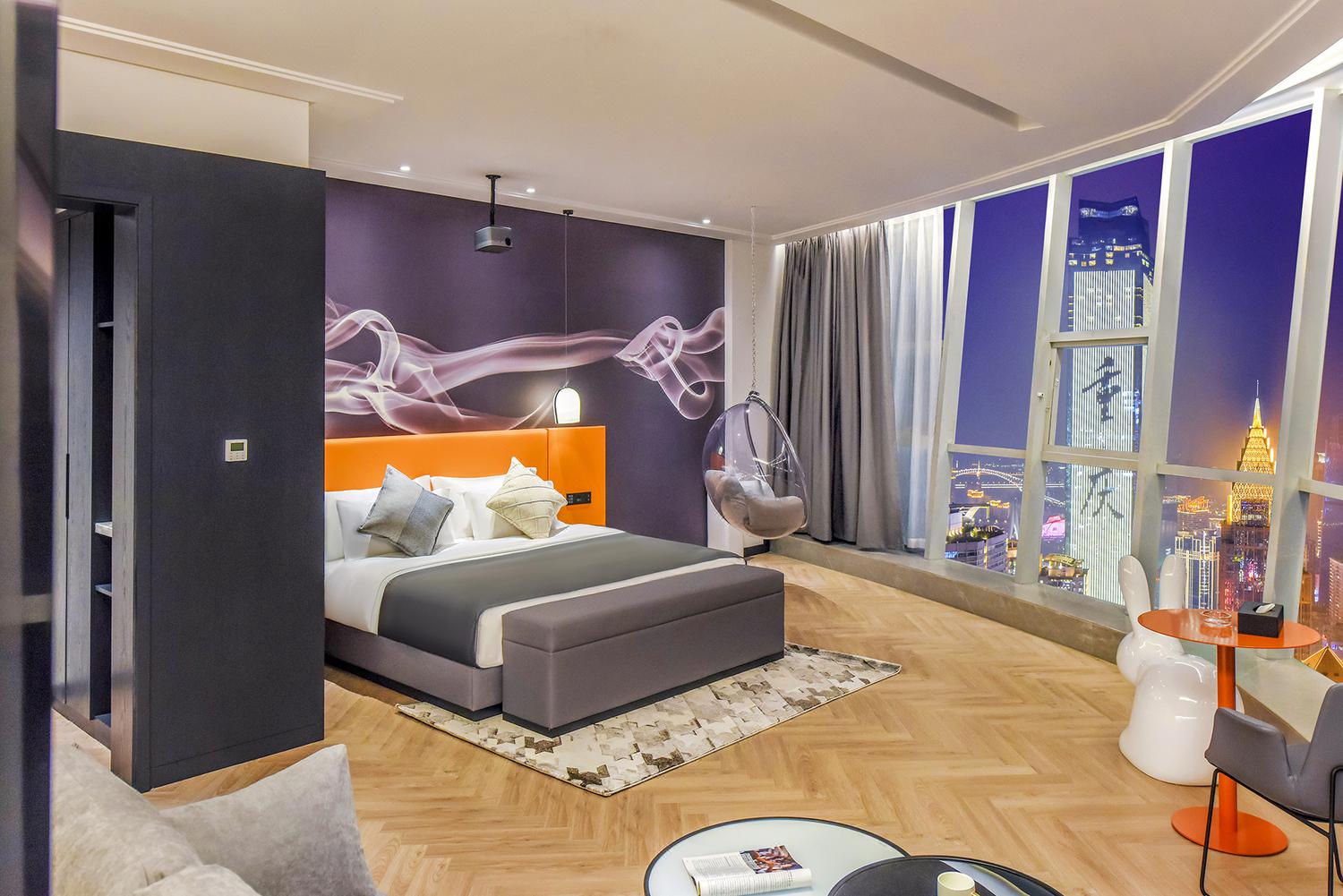 重庆S·island高空江景酒店地处重庆CBD——解放碑,毗邻解放碑步行街、朝天门码头、来福士等地标建筑。洪崖洞民俗风景区、八一路好吃街、长江索道等各热门网红打卡地近在咫尺;国泰艺术中心、十八梯等景点环绕四周。酒店楼下约200米便是地铁1/2号线交汇处——“较场口”站,出行便利,乘坐地铁就能快捷地到达全市各大景点和各大交通枢纽站。酒店房间可揽解放碑商圈全貌,可瞰长江、嘉陵江两江交汇,尽享渝中半岛的无敌夜景。每一间客房均配备了全自动操作系统,高级定制鹅绒被和洗浴用品、全景落地窗、超大屏电视、中央空调、独立wifi等设施应有尽有。酒店采用管家式服务,从入住前、到最后离店均有管家全程服务,为您的重庆之行提供全程的咨询和贴心服务。酒店清婉惬意的简约中又不乏繁复芬芳的勃勃生机,让身处在繁华喧嚣都市之中的你亦能体会到岁月的宁静与深远。房间装饰简洁而富有现代的设计感,屋内的一花一物,不多不少。每一个细节的铺排,都是恰到好处的舒适感觉。为你提供一个自在、放松的居停空间。在这里,能够休憩、充电、放松,是出行及旅游的不二选择。
