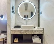 便利设施:空调,书桌,多种规格电源插座,110V电压插座,遮光窗帘,自动窗帘,备用床具,房内保险箱,床具:鸭绒被,床具:毯子或被子,衣柜/衣橱,开夜床,客房WIFI,空气净化器,熨衣设备,衣架,针线包,休闲椅,茶几,220V电压插座,沙发卫浴设施:拖鞋,24小时热水,吹风机,牙刷,洗发水,浴室放大化妆镜,护发素,香皂,浴帽,浴巾,浴衣,私人浴室,私人卫生间电器多媒体:有线频道,液晶电视机,智能门锁,电影服务,音响食品饮品:电热水壶,冰箱,用餐区,茶包,软饮,水果,小食,瓶装水室外景观:城景,江/河景,山景,地标景洗浴用品:毛巾儿童及加床: 该房型允许携带儿童入住。13岁及以上客人按成人收费 床铺:每间客房限制6-12岁儿童,和成人共用现有床铺超过入住人数时,可能涉及额外费用,收费规则如下该房型不提供加床。该房型不提供加婴儿床。 云景270度环幕超大床套房「环幕山城江河美景+浪漫浴缸+影院级放映机」50平米 有窗 43-44层 |