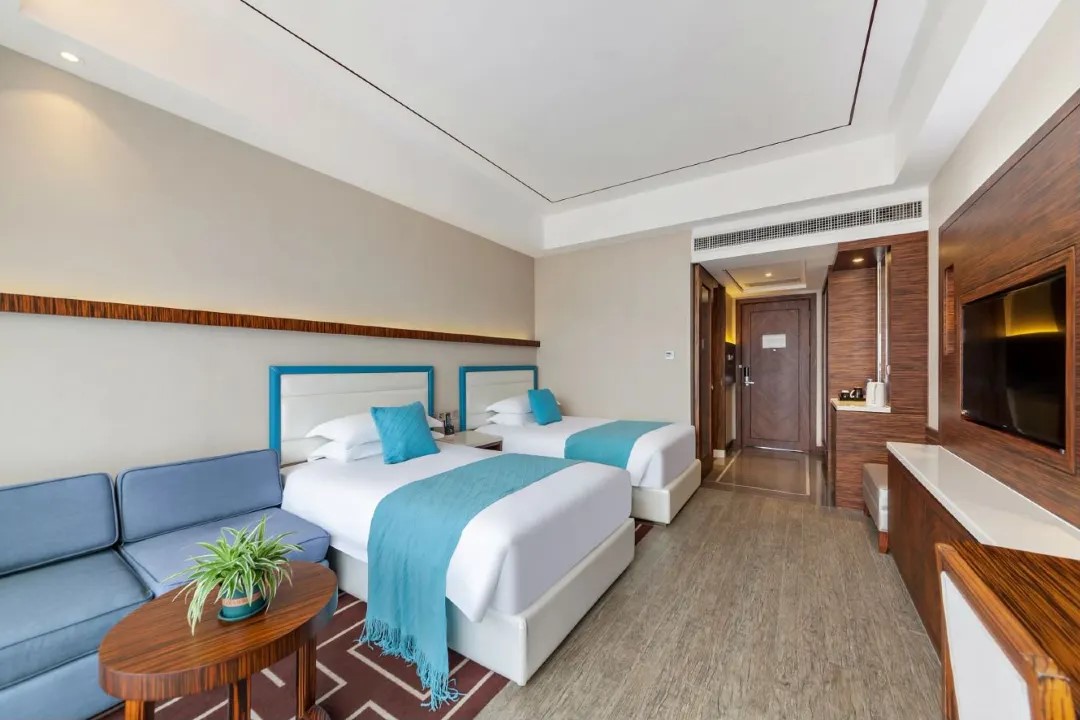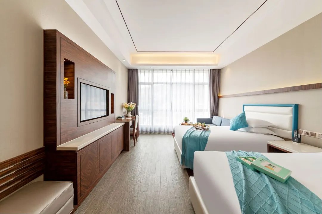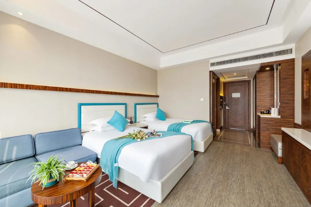 2份早餐 套餐含食 下午茶套餐(途纪门店三选一)使用说明 餐饮菜单: 接待时间: 12:01-18:59 适用人数: 1名成人 联系电话: +86-18059282286 预约规则: 需提前1天预约 规则说明: 入住期间每间房可享一次,使用地点为凭订单号及订单截图到途纪门店吧台登记领取 特别补充: 凭订单号及订单截图到途纪门店吧台登记领取(套餐不去使用酒店不找零不退款),具体门店详情如下:,1、途纪·海岸线地址:思明区环岛东路2188-18号 营业时间:10:00-21:00 电话:18059282286(微信同号),2、途纪·海野地址:思明区环岛南路3068-2号(金沙湾宾馆靠海侧)营业时间:9:00-21:00 电话:18159291529(微信同号),3、途纪·落日码头地址:思明区厦禾路2号 营业时间:10:00-22:00 电话:15880219275(微信同号) 套餐可享礼遇 南靖云水谣或永定高北土楼一日游(二选一)使用说明 适用人数: 2名成人 联系电话: +86-18030290858 预约规则: 需提前1天预约 规则说明: 领取方式为酒店前台,入住期间每间房可享一次,使用地点为酒店内 特别补充: 1.每间房只享受一个一日游名额,连住名额不累计,两人同行第二位半价;入住期间仅限一次,套餐内容未使用酒店不找零不退款;,2.客人需提前至少一天致电业务对接电话:18030290858,详情请联系旅行社机构,以咨询确认为准;,3.法定节假日不适用。,【费用包含】,1)大交通:含厦门/土楼往返车费,2)用 餐:赠送围桌中式简餐,八菜一汤,十人一桌(午餐不吃不退差价) ,3)景 点:含以途经景点首道门票,4)导 游:当地景区持证讲解员,5)儿童价标准:身高0.7~1.2米(含),含车位、半价正餐、导服、门票费用,1.2米以上按成人计算,6)保 险:旅行社责任险及旅行人身意外险 不可加床 豪华园景双床房30平米 有窗 2-9层 |