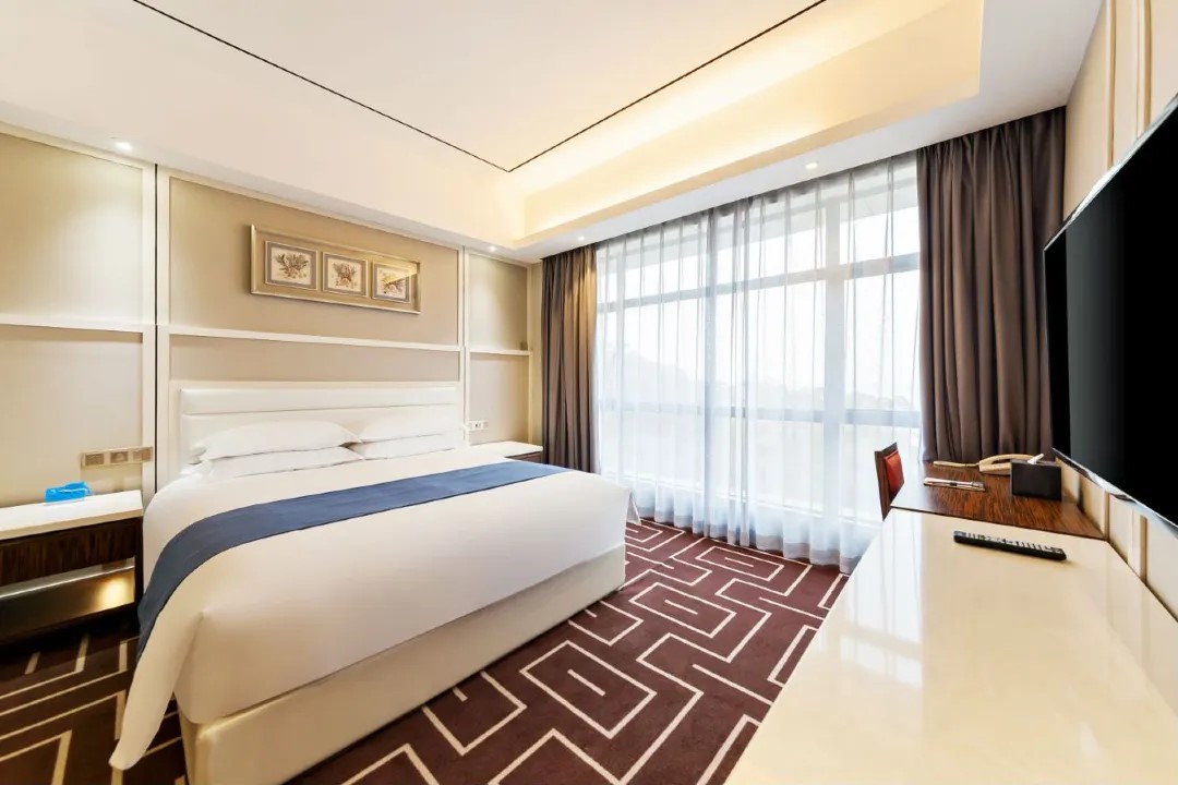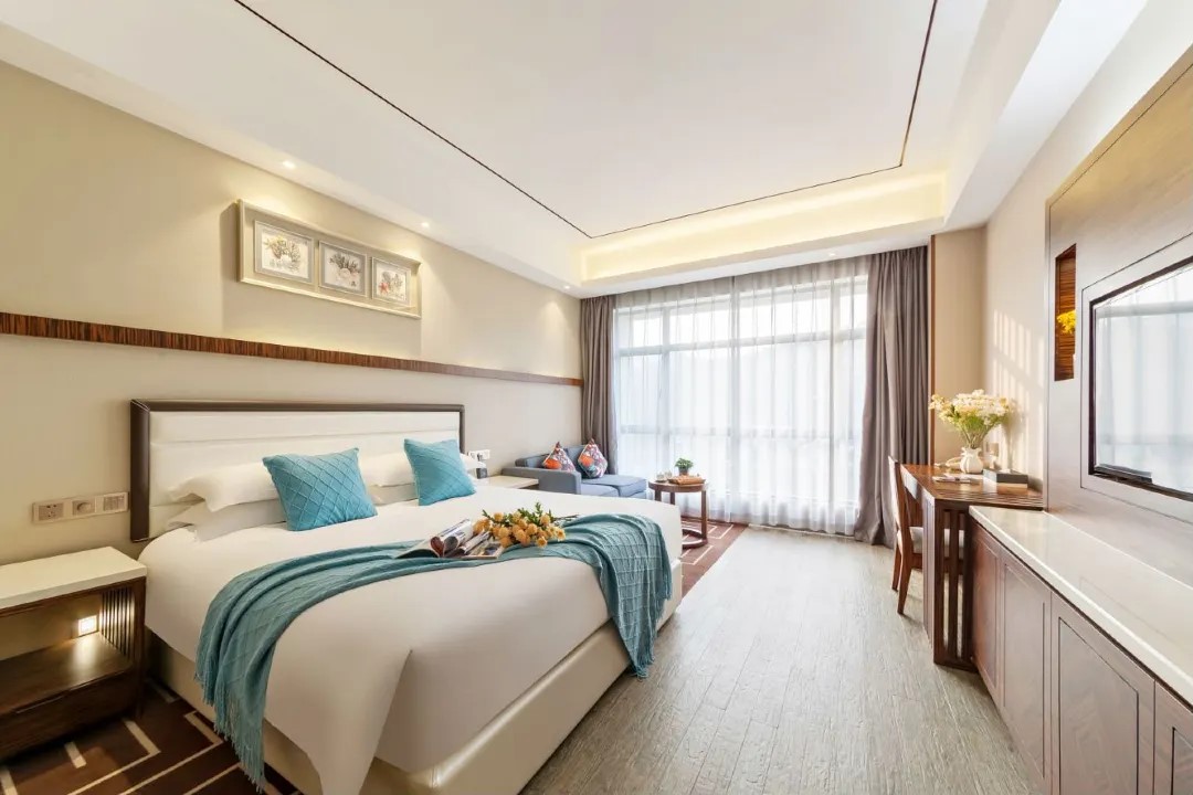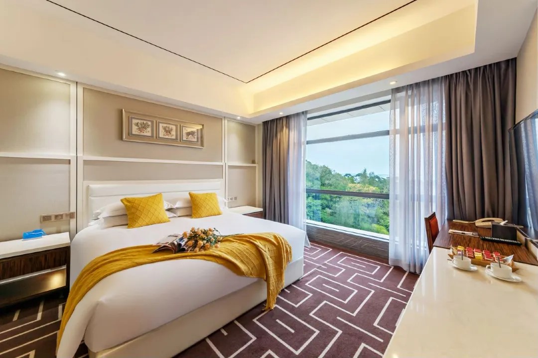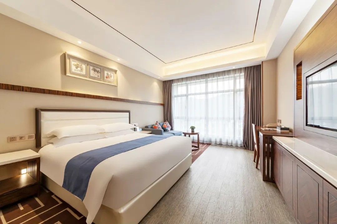 每间房只享受一个一日游名额,连住名额不累计,两人同行第二位半价;入住期间仅限一次,套餐内容未使用酒店不找零不退款;,2.客人需提前至少一天致电业务对接电话:18030290858,详情请联系旅行社机构,以咨询确认为准;,3.法定节假日不适用。,【费用包含】,1)大交通:含厦门/土楼往返车费,2)用 餐:赠送围桌中式简餐,八菜一汤,十人一桌(午餐不吃不退差价) ,3)景 点:含以途经景点首道门票,4)导 游:当地景区持证讲解员,5)儿童价标准:身高0.7~1.2米(含),含车位、半价正餐、导服、门票费用,1.2米以上按成人计算,6)保 险:旅行社责任险及旅行人身意外险 豪华园景大床房30平米 有窗 2-8层 |