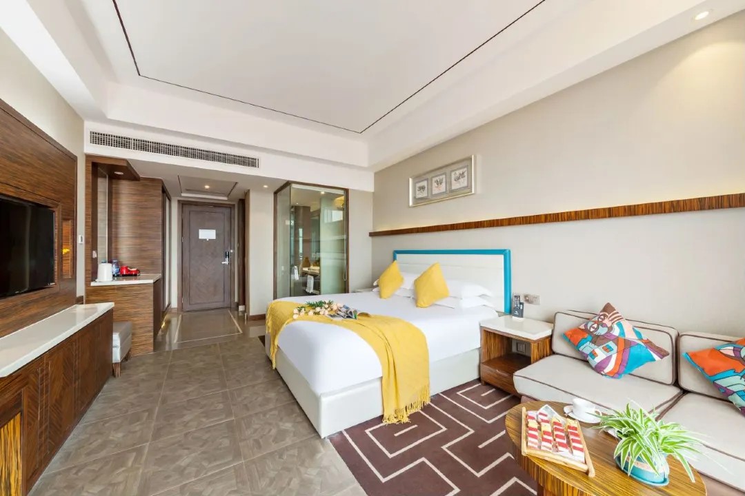 加床:258元/人/晚 2份早餐 套餐含食 下午茶套餐(途纪门店三选一)使用说明 餐饮菜单: 接待时间: 12:01-18:59 适用人数: 1名成人 联系电话: +86-18059282286 预约规则: 需提前1天预约 规则说明: 入住期间每间房可享一次,使用地点为凭订单号及订单截图到途纪门店吧台登记领取 特别补充: 凭订单号及订单截图到途纪门店吧台登记领取(套餐不去使用酒店不找零不退款),具体门店详情如下:,1、途纪·海岸线地址:思明区环岛东路2188-18号 营业时间:10:00-21:00 电话:18059282286(微信同号),2、途纪·海野地址:思明区环岛南路3068-2号(金沙湾宾馆靠海侧)营业时间:9:00-21:00 电话:18159291529(微信同号),3、途纪·落日码头地址:思明区厦禾路2号 营业时间:10:00-22:00 电话:15880219275(微信同号) 套餐可享礼遇 南靖云水谣或永定高北土楼一日游(二选一)使用说明 适用人数: 2名成人 联系电话: +86-18030290858 预约规则: 需提前1天预约 规则说明: 领取方式为酒店前台,入住期间每间房可享一次,使用地点为酒店内 特别补充: 1.每间房只享受一个一日游名额,连住名额不累计,两人同行第二位半价;入住期间仅限一次,套餐内容未使用酒店不找零不退款;,2.客人需提前至少一天致电业务对接电话:18030290858,详情请联系旅行社机构,以咨询确认为准;,3.法定节假日不适用。,【费用包含】,1)大交通:含厦门/土楼往返车费,2)用 餐:赠送围桌中式简餐,八菜一汤,十人一桌(午餐不吃不退差价) ,3)景 点:含以途经景点首道门票,4)导 游:当地景区持证讲解员,5)儿童价标准:身高0.7~1.2米(含),含车位、半价正餐、导服、门票费用,1.2米以上按成人计算,6)保 险:旅行社责任险及旅行人身意外险 豪华海景房30平米 有窗 5-9层 |