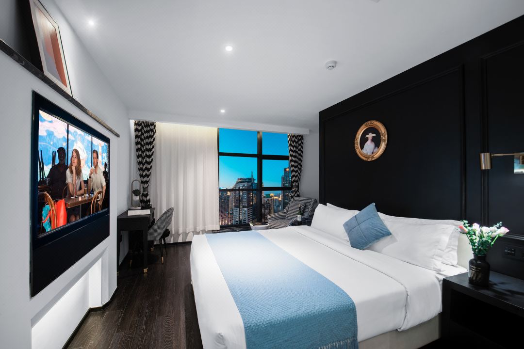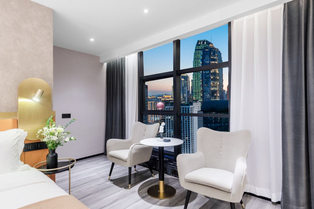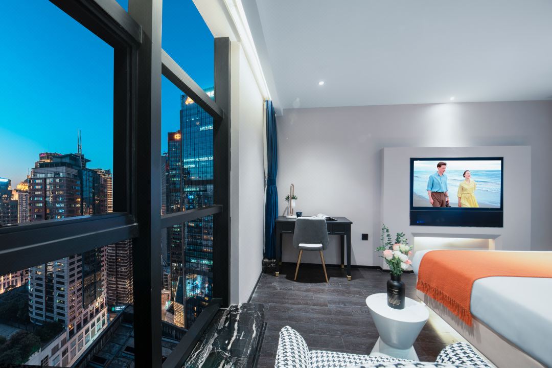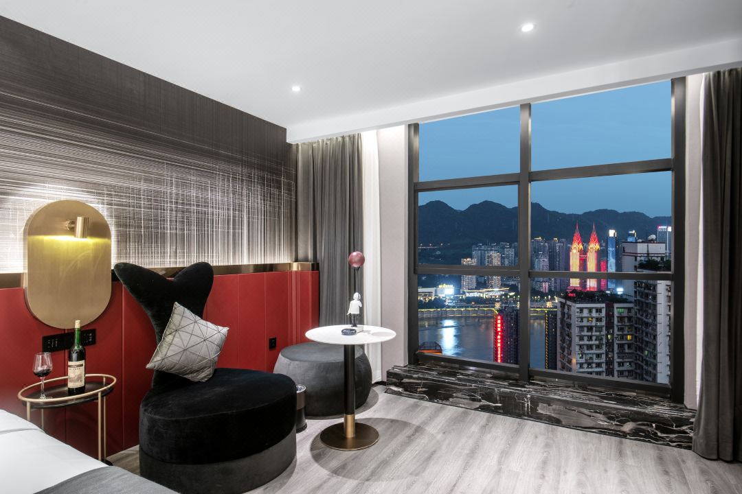 酒店共有70余间房,客房设计独特时尚,房间配套设施齐全:品牌卫浴、高清网络电视、免费WIFI、独立淋浴间等,室内设施齐全,大胆的配色、精美的家具、搭配时尚的饰品,让每一位顾客可都能感受到别致的入住体验。房间搭配大大的窗户,可眺望江景、城景,让您尽情享受山城的魅力精致。温馨的假期,温馨的奇遇,愿您在TheMove江景酒店(重庆解放碑洪崖洞店)过得开心快乐。