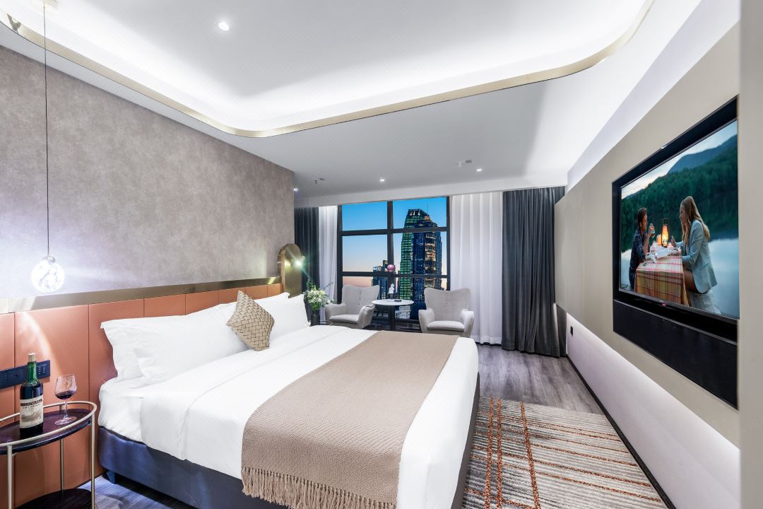 便利设施:电子秤,书桌,多种规格电源插座,遮光窗帘,床具:鸭绒被,床具:毯子或被子,雨伞,熨衣设备,衣架,针线包,220V电压插座,空调免费,备用床具免费,沙发卫浴设施:拖鞋,24小时热水,吹风机,牙刷,洗发水,浴室放大化妆镜,护发素,香皂,浴帽,浴巾,浴衣,私人浴室,私人卫生间电器多媒体:有线频道,液晶电视机,智能门锁,音响食品饮品:电热水壶,用餐区,茶包,咖啡壶/茶壶,瓶装水免费室外景观:城景洗浴用品:毛巾儿童及加床: 该房型允许携带儿童入住。13岁及以上客人按成人收费 床铺:每间客房限制12岁及以下儿童,和成人共用现有床铺超过入住人数时,可能涉及额外费用,收费规则如下 年龄 床铺 费用 居山·至景大床房20-25平米 有窗 14-27层 |