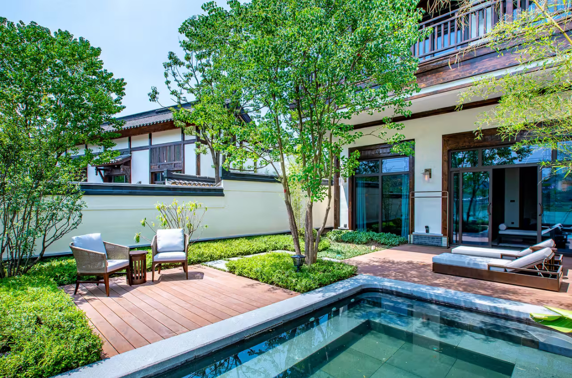 酒店为主城区内的岛式酒店群,四面环湖,环境优雅,周边有高速路口,轻轨站,驾车、公共交通均便利。别墅部分配有独立户外泡池,除个性化的定制别墅早餐,亦可定制高端私宴。别具一格的宋品西餐厅及宋品中餐厅,以臻选食材与专享私属的服务为特色, 让顾客真正领略到美食与高品质服务带来的乐趣。