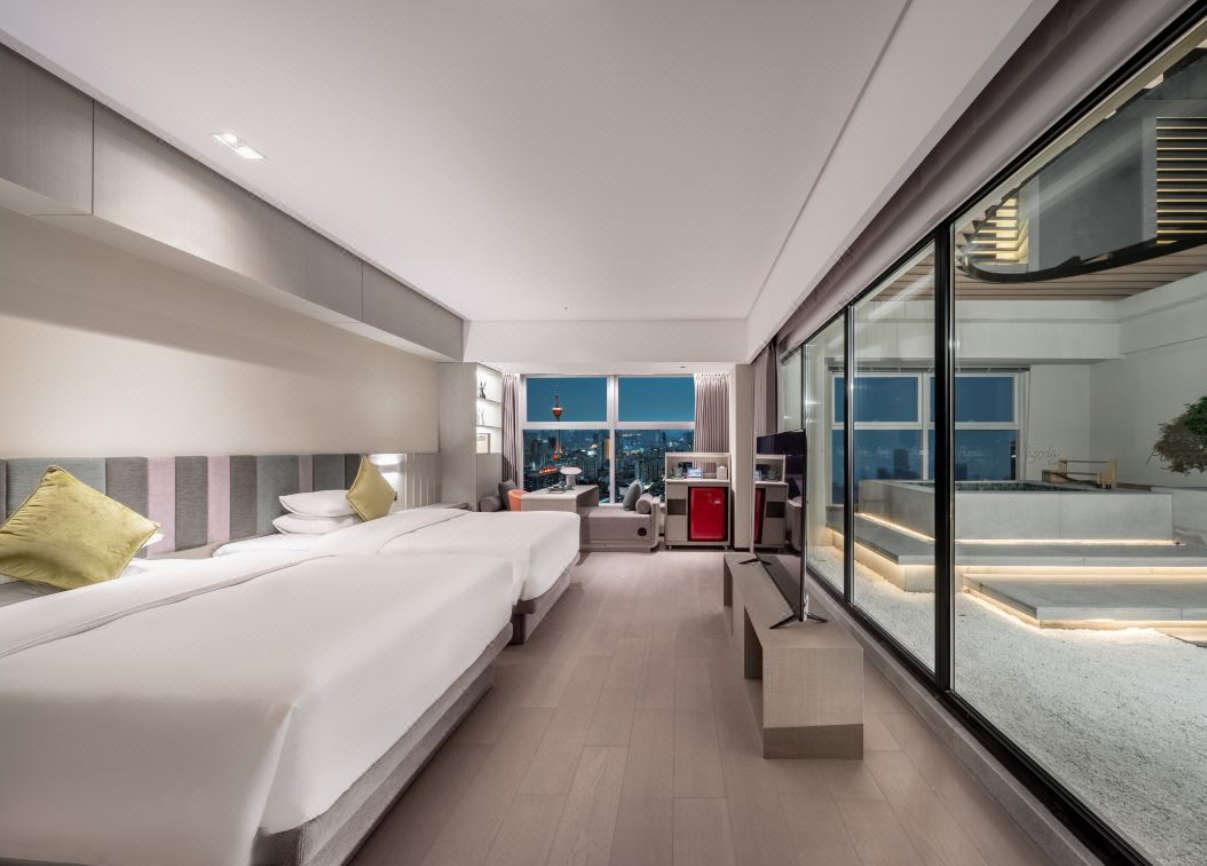 基本信息 40平方米 2张双人床1.4米 加床费用:该房型不可加床 36-38楼 全部设施 洗浴用品 牙刷 牙膏 沐浴露 洗发水 护发素 香皂 浴帽 梳子 剃须刀 客房布局和家具 沙发 衣柜/衣橱 书桌 休闲椅 清洁服务 每日打扫 熨衣设备 食品饮品 小食 咖啡机 咖啡壶壶 茶包 软饮 瓶装水(免费) 迷你吧(免费) 网络与通讯 客房WIFI(免费) 室外景观 地标景 城景 卫浴设施 私人浴室 私人卫生间 智能马桶 吹风机 浴室化妆放大镜 浴衣 毛巾 浴巾 24小时热水 拖鞋 媒体科技 智能客控 液晶电视机 有线频道 智能门锁 客房设施 空调(免费) 自动窗帘 遮光窗帘 床具:鸭绒被 床具:毯子或被子 备用床具(免费) 厨房用品 冰箱 便利设施 管家服务 电子秤 针线包 衣架 多种规格电源插座 220V电压插座 雨伞 儿童及加床 该房型欢迎携带儿童入住 婴儿床及加床政策 超过入住人数时,可能涉及额外费用,收费规则如下 年龄 床铺 费用 17岁及以下 使用现有床铺 免费 该房型不提供加床、不提供加婴儿床 亲子房40平方米平米 有窗 36-38楼层 |