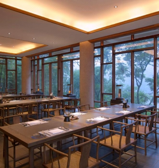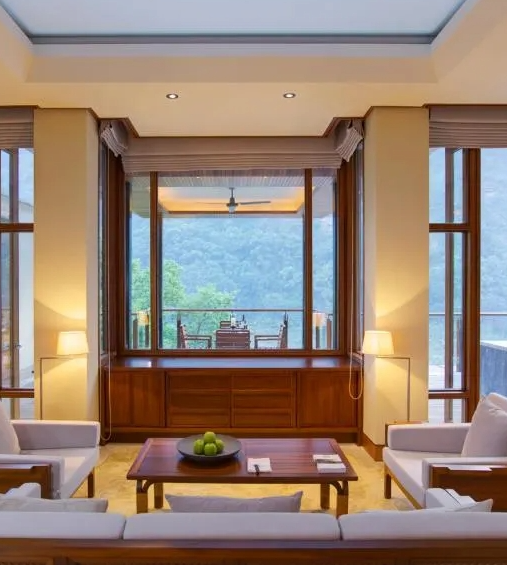酒店以天空、水岸、大地、植被以及山体的完美结合为设计主题,把酒店建筑巧妙融入大自然,使依山傍水的重庆柏联犹如生长于泥土之中,源于自然而归于自然,内蕴深厚却无丝毫彰显。