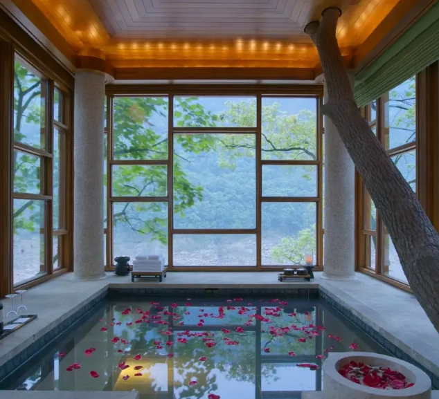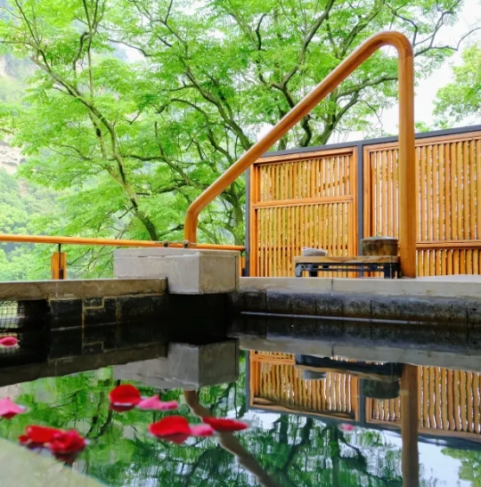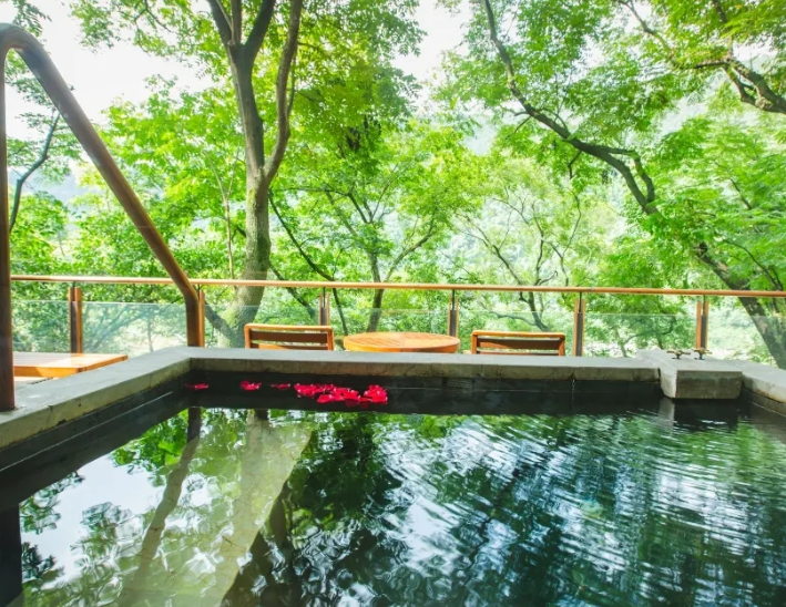 酒店内由北温泉清雅升级的柏联温泉吸纳了高山江河之天地灵气,水质佳美,水量丰富,不仅融合火山石矿物滋养、荟萃花草植物精华,更具浓郁的历史人文气息。柏联按中国传统阴阳五行之理,将山涧溪流、鸟语花香环绕下的天然温泉与地理、典故相结合,使温泉浴这一养生佳事更升华为对千年北温泉的探索过程,堪称把中国传承千百年的温泉文化进行了升华。