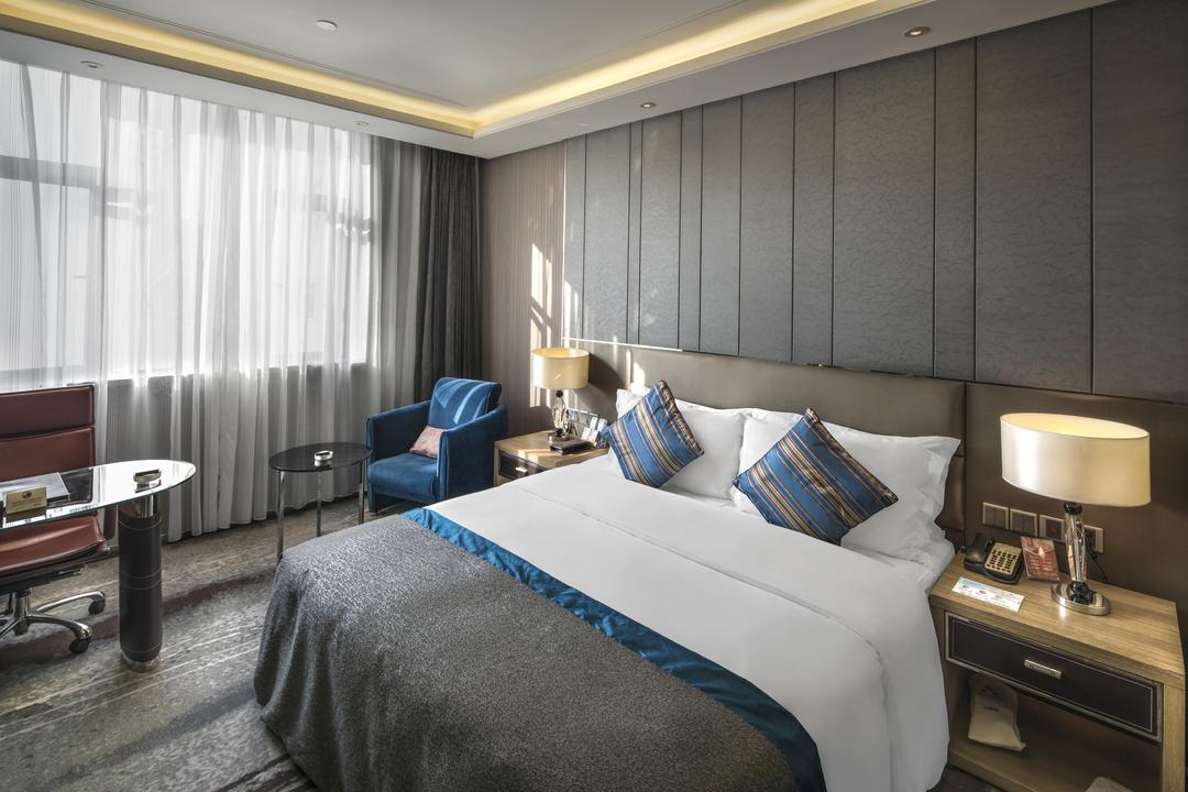 面积:50㎡床型:1张2.0米特大床, 可以加床,费用详询酒店窗户:有窗楼层:7-9层(普通楼层)入住人数:可入住2人吸烟政策:允许吸烟 便利设施:空调,电子秤,暖气,书桌,多种规格电源插座,110V电压插座,遮光窗帘,手动窗帘,房内保险箱,床具:鸭绒被,床具:毯子或被子,衣柜/衣橱,开夜床,雨伞,衣架,针线包,220V电压插座,备用床具免费,沙发卫浴设施:拖鞋,24小时热水,吹风机,牙刷,洗发水,浴室放大化妆镜,香皂,浴帽,浴衣,私人浴室,私人卫生间电器多媒体:国际长途电话,电话,有线频道,液晶电视机,智能门锁,卫星频道食品饮品:电热水壶,冰箱,茶包,酒精饮料,软饮,小食,瓶装水免费,迷你吧收费洗浴用品:毛巾无障碍设施:浴室 - 带紧急按钮儿童及加床: 该房型允许携带儿童入住。18岁及以上客人按成人收费 床铺:每间客房限制17岁及以下儿童,和成人共用现有床铺每间客房最多可容纳1张加床超过入住人数时,可能涉及额外费用,收费规则如下 年龄 床铺 费用 早餐: 加床政策、儿童人数请参考您所选择的客房政策,若超过房型限定人数,可能需要收取额外费用。提出的任何请求均需要获得酒店的确认,所有服务详情以酒店告知为准。身高 费用 豪华大单间未知