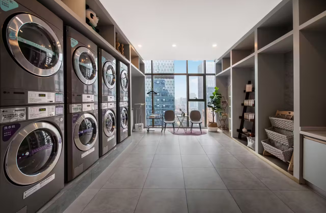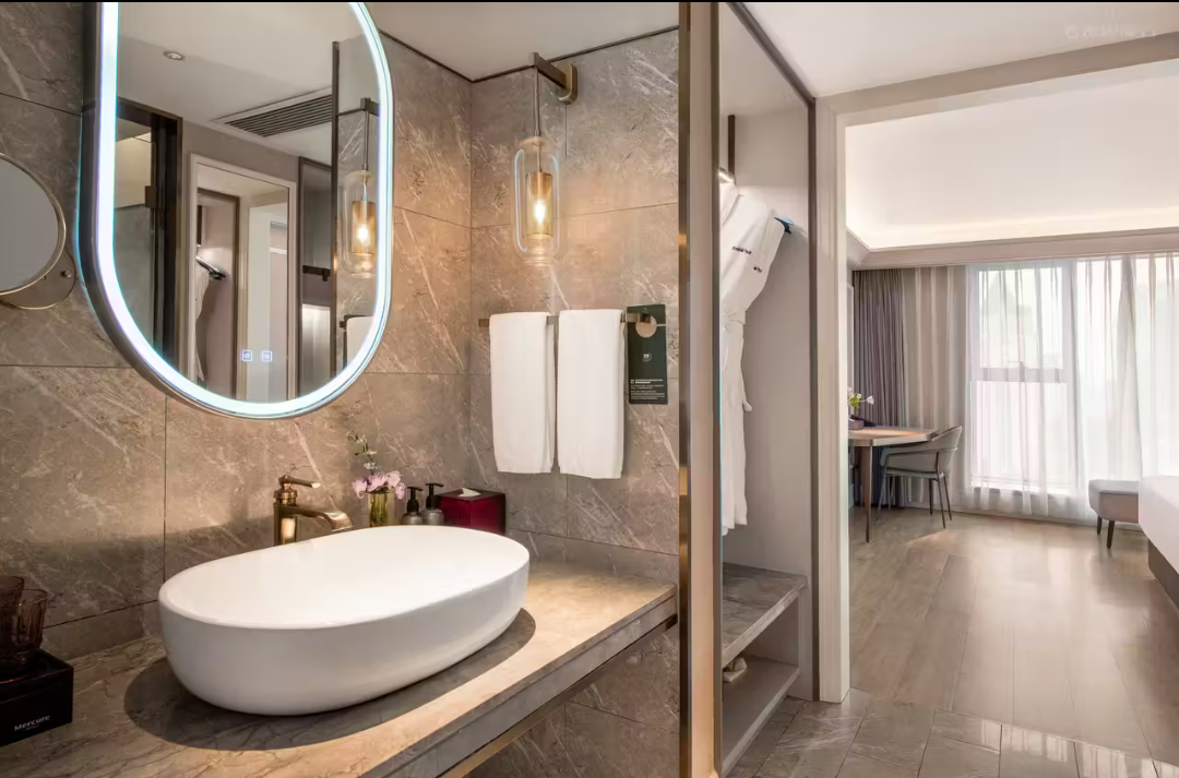 ·设施齐全:酒店配有健身房、自助洗衣房、机器人配送服务等,房间内设施现代化齐备,包括干湿分离的卫生间和迷你吧免费零食饮料。·卫生与环境:整体卫生干净整洁,客房布置温馨,采光好,隔音效果优良。大堂宽敞明亮,夜景美丽。卫生好评率99%。