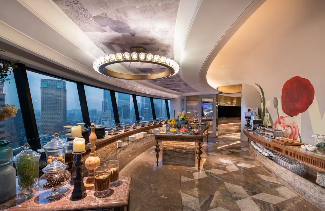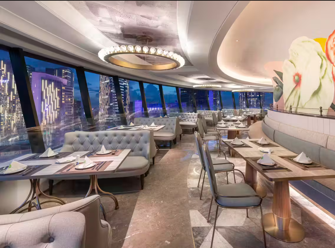 旋转餐厅露台景观优美,早餐选择丰富,用餐时可享开阔视野,环境舒适,带来视觉与味觉双重享受。