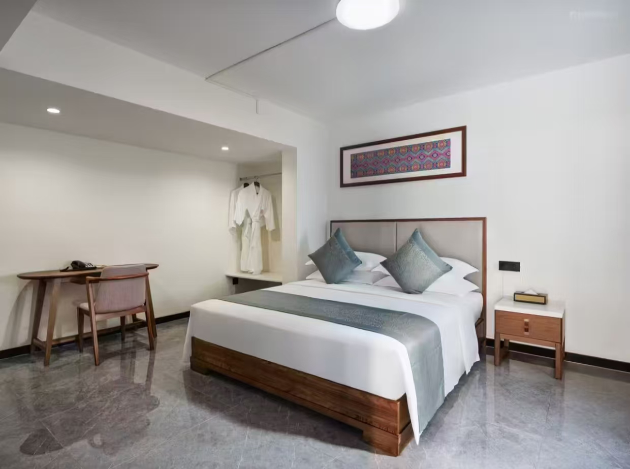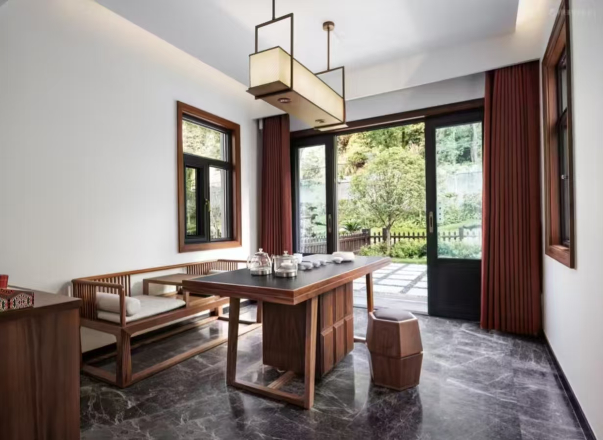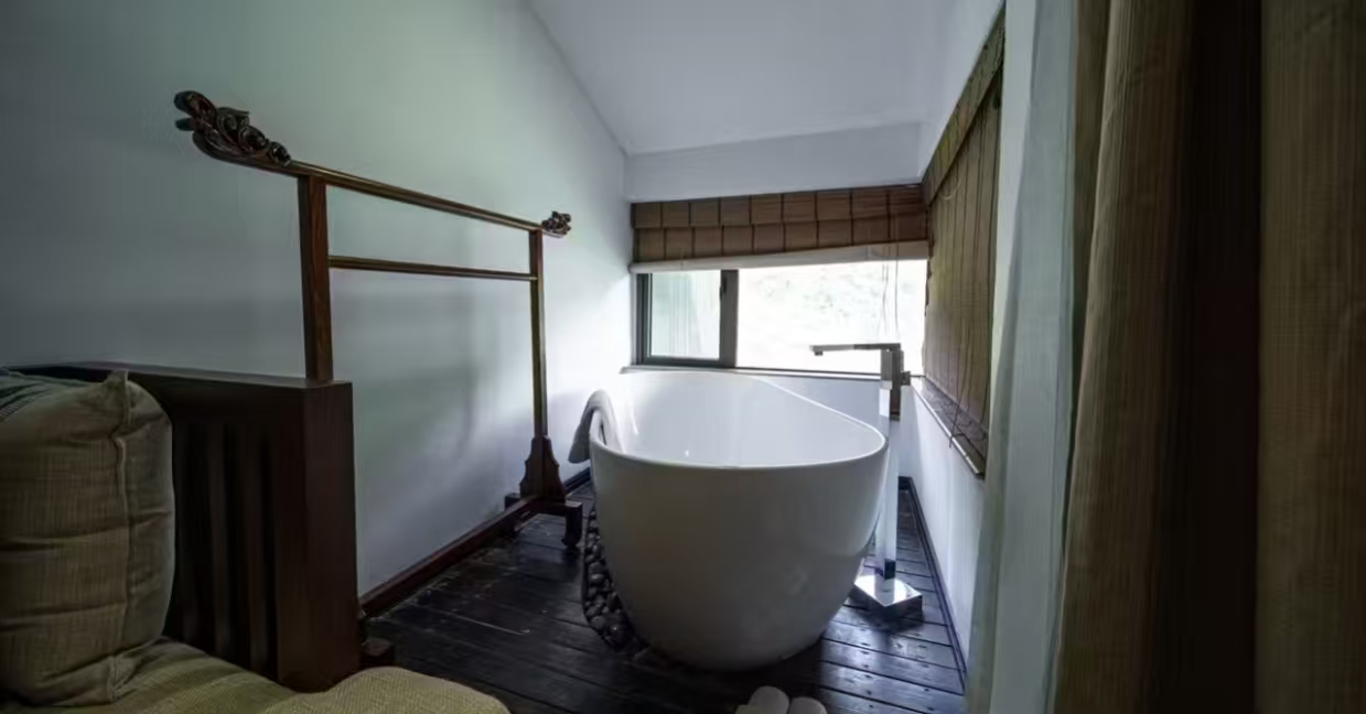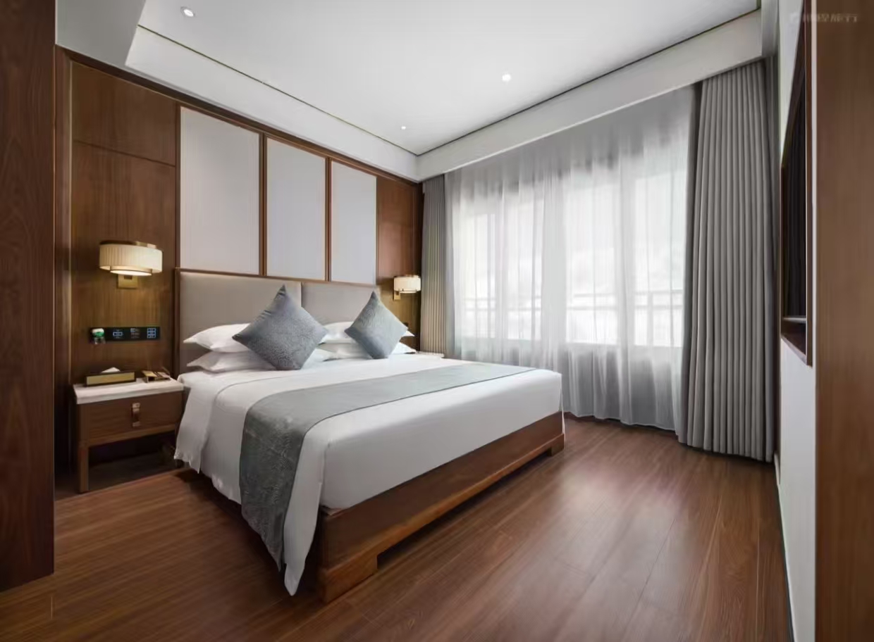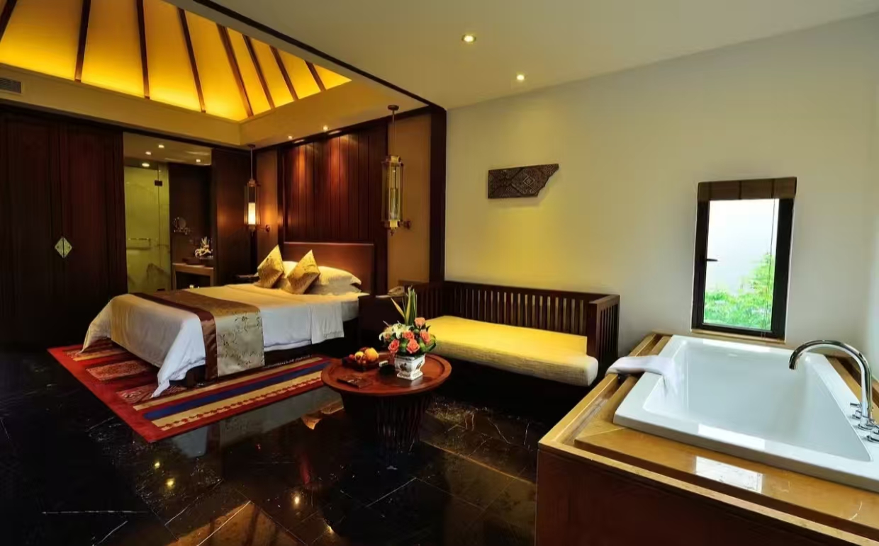 洗浴用品: 牙刷、牙膏、沐浴露、洗发水、护发素、香皂、浴帽、梳子、剃须刀 客房布局和家具: 沙发、衣柜/衣橱、书桌、茶几、休闲椅、餐桌、用餐区、私人入口、挂墙装饰画/字画、阳台、露台、花园/庭院 清洁服务: 每日打扫、熨衣设备、熨裤机 网络与通讯 客房WIFI免费、电话、国际长途电话 食品饮品 咖啡壶/茶壶、茶包、瓶装水免费、电热水壶、迷你吧免费 卫浴设施: 浴缸或淋浴、私人浴室、私人卫生间、智能马桶、吹风机飞利浦、浴室化妆放大镜、浴衣、毛巾、浴巾、24小时热水、拖鞋 室外景观: 山景、花园景、庭院景 客房设施: 空调免费、暖气、手动窗帘、遮光窗帘、特长睡床(超过两米)、床具:鸭绒被、床具:毯子或被子、备用床具免费 媒体科技: 液晶电视机、卫星频道、智能门锁 厨房用品: 冰箱 便利设施: 管家服务、房内保险箱、针线包、开夜、衣架、多种规格电源插座、110V电压插座、220V电压插座、雨伞、欢迎礼品 儿童政策 该房型欢迎携带儿童入住 儿童及加床该房型可提供加床、可提供加婴儿床