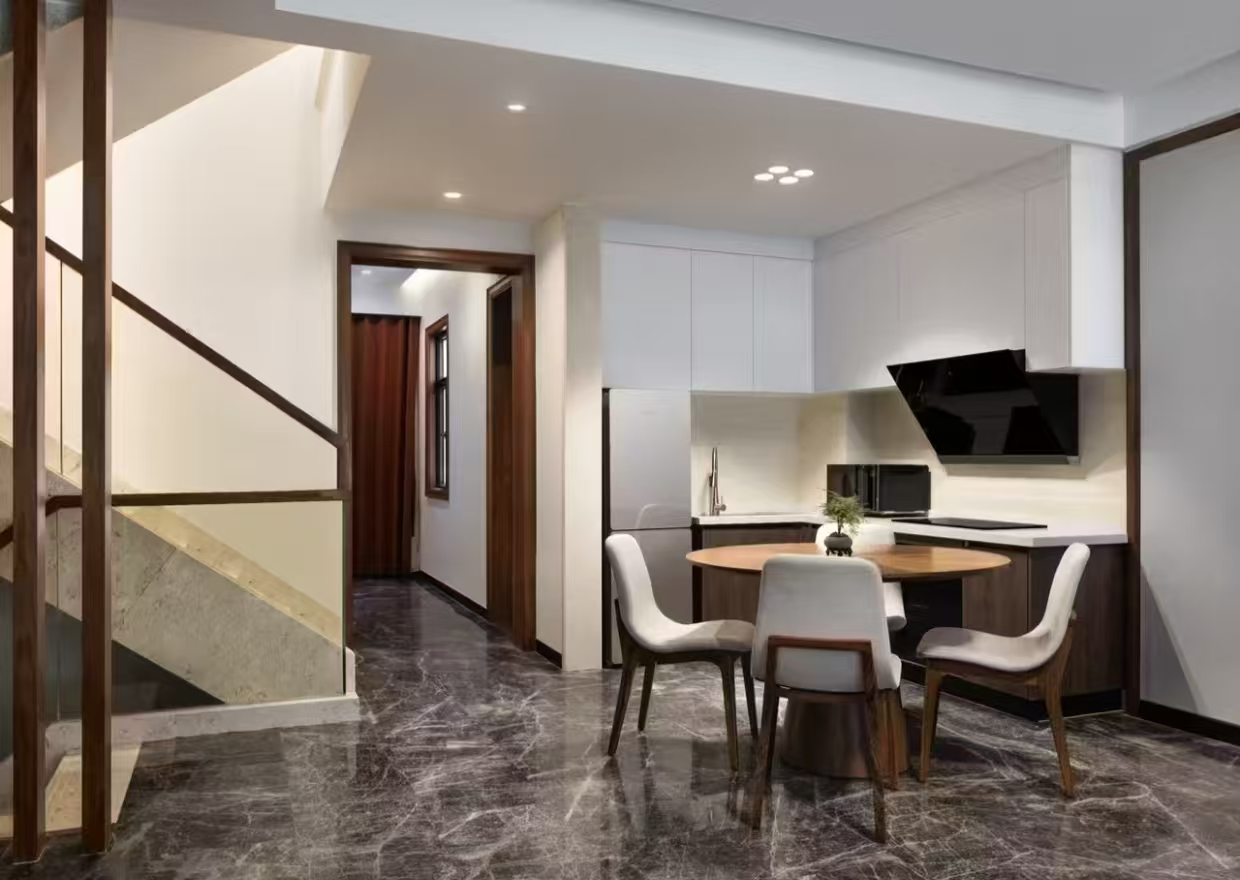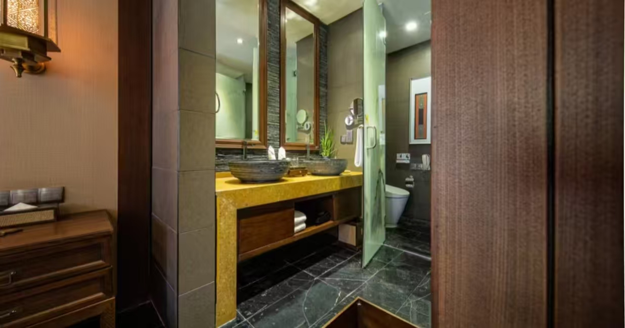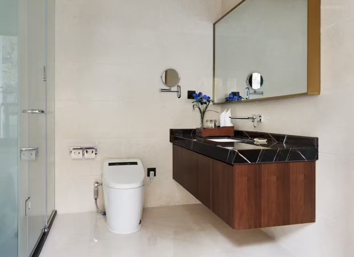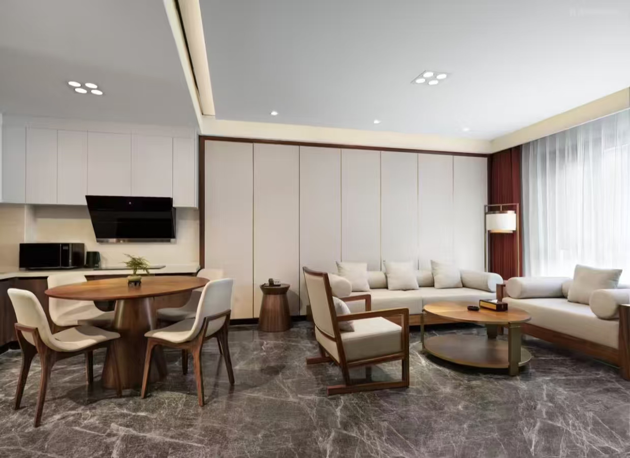 洗浴用品: 牙刷、牙膏、沐浴露、洗发水、护发素、香皂、浴帽、梳子、剃须刀 客房布局和家具: 沙发、衣柜/衣橱、书桌、茶几、休闲椅、餐桌、用餐区、私人入口、挂墙装饰画/字画、阳台、露台、花园/庭院 清洁服务: 每日打扫、熨衣设备、熨裤机 网络与通讯 客房WIFI免费、电话、国际长途电话 食品饮品 咖啡壶/茶壶、茶包、瓶装水免费、电热水壶、迷你吧免费 卫浴设施: 浴缸或淋浴、私人浴室、私人卫生间、智能马桶、吹风机飞利浦、浴室化妆放大镜、浴衣、毛巾、浴巾、24小时热水、拖鞋 室外景观: 山景、花园景、庭院景 客房设施: 空调免费、暖气、手动窗帘、遮光窗帘、特长睡床(超过两米)、床具:鸭绒被、床具:毯子或被子、备用床具免费 媒体科技: 液晶电视机、卫星频道、智能门锁 厨房用品: 冰箱 便利设施: 管家服务、房内保险箱、针线包、开夜、衣架、多种规格电源插座、110V电压插座、220V电压插座、雨伞、欢迎礼品 儿童政策 该房型欢迎携带儿童入住 儿童及加床该房型可提供加床、可提供加婴儿床