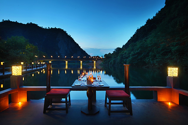 餐饮服务:拥有雍容气派的园林式空中餐厅 9 间约 100㎡,别具湘西民族风情的超大型餐饮包房及优雅精致的亲水庭院西餐厅,可提供悬崖餐厅土家三下锅、山泉豆腐配剁椒蘸碟等特色美食。