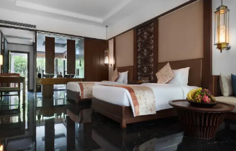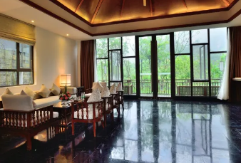 休闲娱乐:设有商务中心、大堂吧、足浴、璞一 SPA、森林汤泉、墨川旅拍、榕树家中医康养中心、华大细胞科普馆、向氏中医养生馆、棋牌室、健身中心、台球室、乒乓球室、瑜伽馆、户外索溪卡丁车 / 射箭场、儿童智乐园、恒温及露天游泳池等多种休闲娱乐设施。