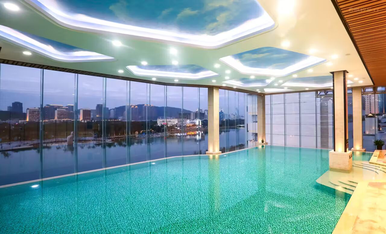 厦门航空金雁酒店恒温无边际泳池,让宾客在畅游的同时可以欣赏美丽的筼筜湖景。