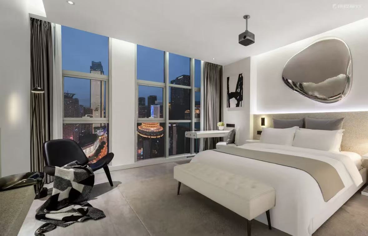 酒店位于重庆渝中半岛解放碑步行街中心,毗邻好吃街,近长江索道、洪崖洞,酒店出行便利:楼下多条轨道、公交路线能到达磁器口、南山、李子坝等多处热门景点和机场、高铁站。酒店是景惠酒店管理公司与美国IDA金奖室内设计团队合作在重庆的酒店项目。酒店以至善之“水”为魂、以完美之“弧”为魄——用极简的黑白色调,在反差中演绎质朴与轻灵、内敛与浪漫的魅力诗篇。酒店客房的面积均在30㎡以上,配备高级定制乳胶床垫、JBL音箱、汉斯格雅和杜拉维特洁具,为客户提供视觉、听觉、触觉的尊贵体验。Ufia眼中,至善即至美,至美即至善。在这汲汲营营的尘世中,我们奔忙行走,但谁又真正放弃过对美的追求? 以水为美,传递善意。 愿Ufia将善与美的微光传递到你的手,温暖您的心️……