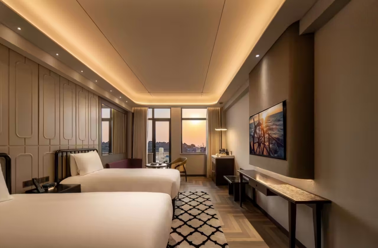 鹭江宾馆,是厦门标志性风貌建筑。名列改革开放后厦门三家酒店之一,现如今是厦门城市文化与历史风貌体验型文物级酒店。 作为鹭岛久负盛名的老牌酒店之一,鹭江宾馆多年来名列厦门酒店入住率前茅。前丹麦女王、李光耀、陈香梅、赵雅芝等众多中外政商名流也曾造访并赞誉有加,刘海粟先生曾为鹭江宾馆亲笔题词:“宾至如归”。作为鹭江道上的地标建筑,它典藏了鹭江两岸百年来的风华,又演绎出中西合璧、传统与现代交织的厦门风情,您下榻的,不仅是酒店,也是时光。 时光隧道1958,是鹭江宾馆的一颗璀璨明珠。每位踏入这里的客人,都能在这方寸之间,聆听城市的心跳,感受时空的故事。 鹭江宾馆将鼓浪屿景观“搬进”房间。晨光初照时,您一睁眼便能饱览鼓浪屿风光。在盥洗室,您在洗漱同时,亦能尽情欣赏鼓浪屿的绝美景色。 鹭江宾馆享有 “食在鹭江”的经典美誉。七楼是中外游客和厦门人民情有独钟的观景餐厅,是集美食与美景于一体的绝美殿堂,常年名列各大口碑排行榜前列。鹭江宾馆从万千食材到千变万化的烹饪手法,追求细节精致,在饱腹之上,满足味蕾想象,跨越时间与山海,寻味鹭江风味。