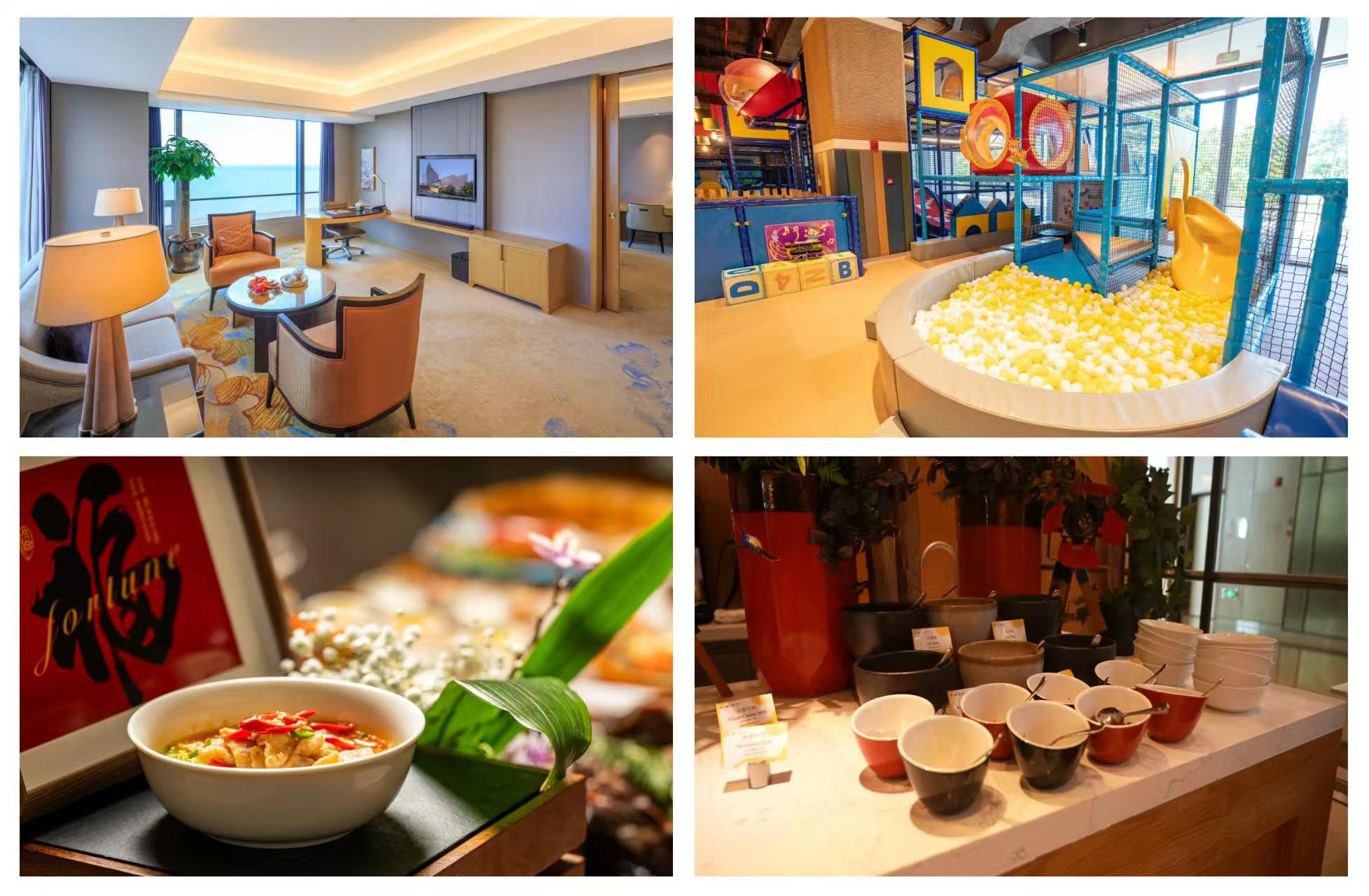 儿童专属设施:客房配备卡通洗漱套装、缩小版马桶圈,泳池深度1.2米并有防滑设计 。