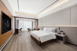 美豪丽致酒店是艺龙酒店科技旗下在昆明全新3.0版本的中高端商务酒店品牌,酒店位于官渡区广福路4889号,地处于南市区繁华地段,毗邻海乐世界购物中心、世纪城商圈,紧邻4A景区官渡古镇。酒店地理位置优越,交通便利。距离滇池国际会展中心、昆明南高铁站、昆明火车站、长水机场较近。 酒店以高品质的设施,简约质感的格调与智能科技完美融合,入住宾客专享管家服务,智能自助入住,智能行李寄存,机器人送物,客房智能客控,自助洗衣熨衣,感受智能科技融合的住宿体验,让您在紧张高节奏的工作之余,在一片素雅和宁静中,享有一份悠闲与自在,让商务生活起来。 酒店设施一应俱全,一百余间精致温馨且有格调的智能客房,6大房型:大床房,双床房,三人间,亲子房,棋牌套房,行政套房,酒店还配备会议室,咖啡厅,商务洽谈区,中西式自助早餐厅,自助洗衣房,健身房,免费停车场,为您呈现极具匠心的极至住宿体验,让您的旅途如沐春风!