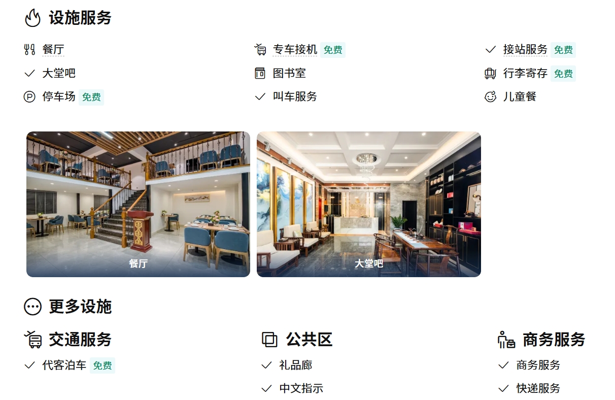 餐饮 【普洱品鉴】普洱茶品鉴 1份 适用人数:3名成人 预约规则:无需提前预约 联系电话: +86-19106944593 规则说明: 入住期间每间房可享一次,使用地点为酒店内 接待时间: 08:00-17:00 特别补充: 入住期间每房可享用,,使用地点 酒店一楼大堂吧。 ![]() 更多体验 【吉象专属】版纳嘎洒机场免费接机/版纳高铁站免费接站(需提前1天预约) 1份 适用人数: 3名成人,1名儿童,身高1.8米(含)以上或者年龄18周岁(含)以上儿童计入成人数。 预约规则: 需提前1天预约 联系电话: +86-19106944593 规则说明: 仅可在入住首日使用 接待时间: 08:00-23:00 特别补充: 温馨提示:免费接机 接站 需提前一天预约,为了能更好更准时的为您服务,请提前一天联系酒店安排司机。 【门票优享】版纳各景点及演出门票5—9折券。咨询酒店前厅 1份 适用人数: 1名成人 预约规则: 需提前2小时预约 联系电话: +86-19106944593 规则说明: 领取方式为前台预订获取,入住期间每间房可享一次,使用地点为酒店内 接待时间: 09:00-21:00 特别补充: 酒店前台可代订:野象谷、基诺山寨、森林公园、曼听公园、傣族园等景点门票,和篝火晚会、勐巴拉纳西、傣秀、游轮等演出门票,仅售市场价7.5—9.5折,具体咨询酒店前台 【无忧专享】勐泐大佛寺专车免费送到景区【节省时间 免车费 需咨询酒店前台自行预定门票】 1份 适用人数: 3名成人 预约规则: 需提前2小时预约 联系电话: +86-19106944593 规则说明: 入住期间每间房可享一次 接待时间: 08:00-23:00 特别补充: 勐泐大佛寺景区专车免费接送需咨询酒店前厅部,快捷方便,节省费用50元左右,需咨询酒店前厅部自行订购门票【详情咨询酒店前厅接待部】 180度观景露台豪华大床房【露台+迷你冰箱+无卡取电】33平方米平米 有窗 12-15层层 |