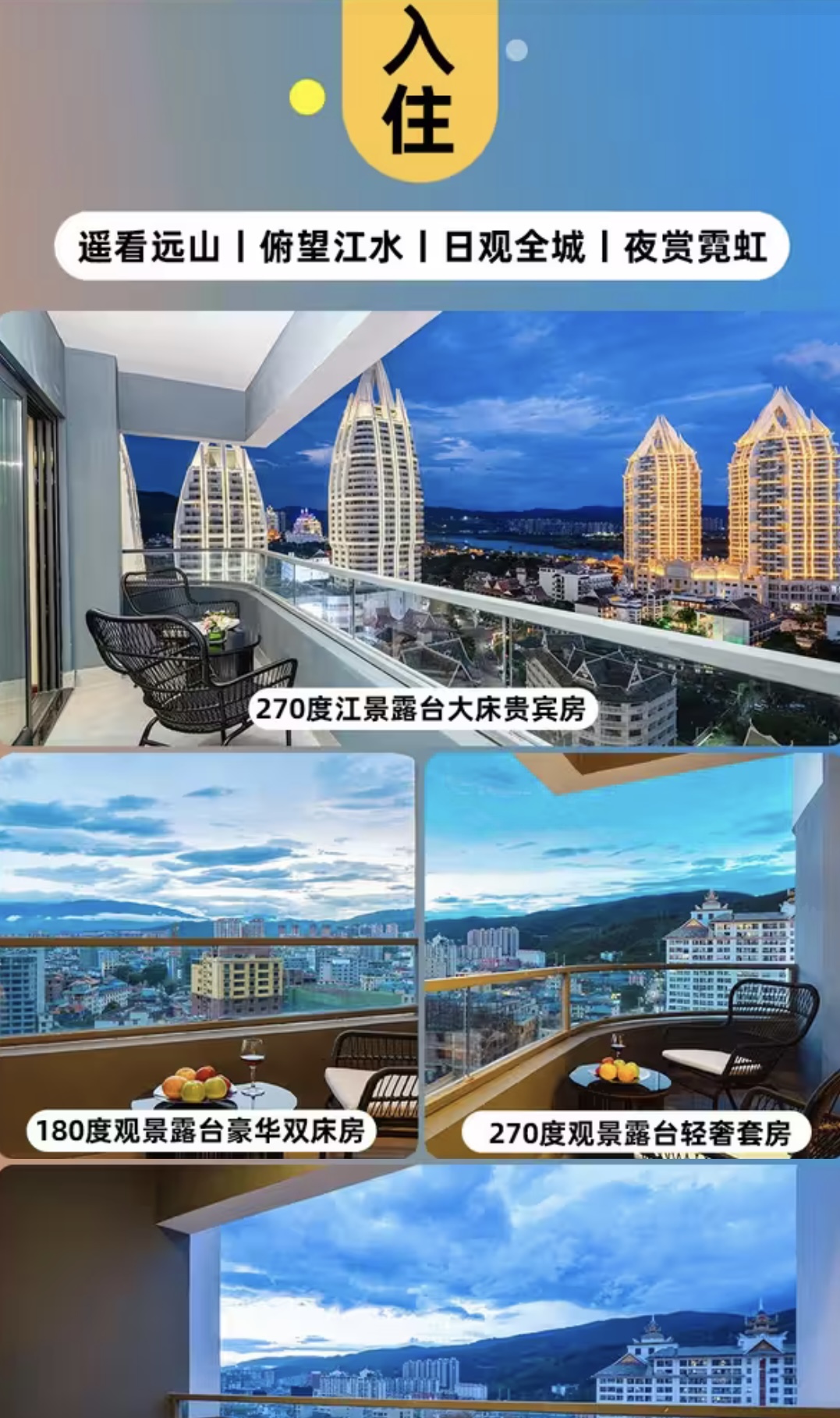 儿童政策 该房型欢迎携带儿童入住 270度观景露台轻奢套房【观景露台+迷你冰箱+蓝牙音响】50平方米 |平米 有窗 12-15层层 |