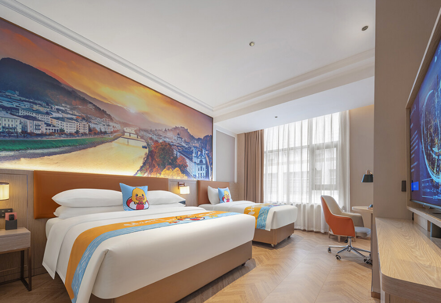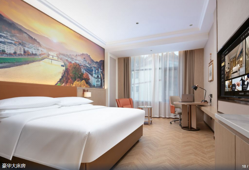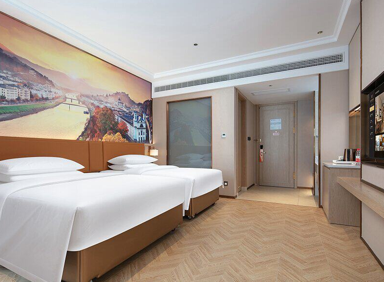 作为维也纳 5.0 升级版酒店,客房设计兼具舒适与格调,拥有豪华双床房、景观大床房、亲子房等多种房型,面积 25-30㎡不等,均配备外窗与柔软床品,部分景观房可直览青山绿意。房间内高速 WIFI、智能设备一应俱全,洁净的卫浴空间与贴心配置的洗漱用品,让每位住客都能卸下旅途疲惫。酒店公共设施完善,24 小时开放的健身房满足运动需求,自助洗衣房配备洗衣液与烘干设备,解决长途旅行洗衣难题,自助茶饮区随时提供暖心饮品。