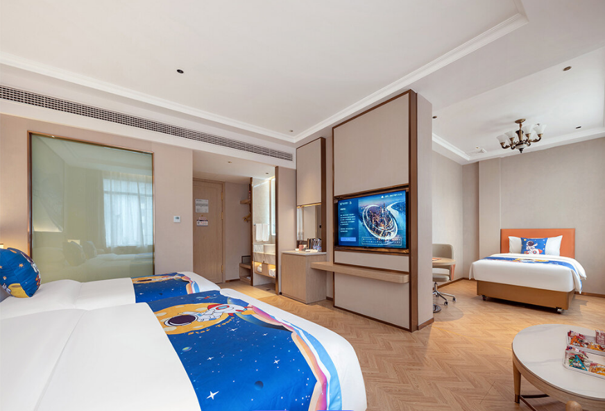 空间布局:宽敞通透,兼顾实用与观景,该房型建筑面积约 28-32㎡,整体采用方正布局,无冗余拐角设计,最大化提升空间利用率。 设施配置:智能便捷,满足多元需求,房间内设施齐全且注重实用性,完全适配游客的出行需求。 特色体验:细节服务,提升居住质感,除基础设施外,该房型还附带多项特色服务,进一步提升居住体验。 儿童设施服务