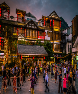 核心亮点:这条沿澧水河而建的古街,以土家吊脚楼为特色,藏着最鲜活的湘西烟火气。白天可逛手工艺品店,夜晚则化身美食与民俗的盛宴 —— 既能在 “土家三下锅餐馆” 品尝腊肉、豆腐、萝卜慢炖的招牌菜,也能欣赏土家族打溜子表演,或是在街头小摊买一份外酥里糯的蒿子粑粑。街尾的滨水栈道还能眺望暮色中的峰林剪影,随手拍都是湘西风情大片。