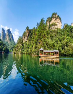 核心亮点:被誉为 “世界湖泊经典” 的高峡平湖,湖水如翡翠般镶嵌在群山之间。乘土家乌篷船泛舟湖上,可见 “仙女照镜”“神龟出水” 等峰林倒映水中,船行途中还能听到阿哥阿妹的山歌对唱。湖畔 72 米高的宝峰飞瀑气势磅礴,夏季水雾弥漫,堪称天然 “降温舱”,与酒店的 “健康旅居” 理念形成完美呼应。