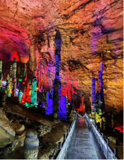 核心亮点:有 “世界溶洞全能冠军” 之称的地下奇观,洞内分四层景观,兼具旱洞徒步与暗河游船体验。标志性景观 “定海神针” 高 19.2 米,曾投保 1 亿元,在 3D 光影秀映照下更显奇幻。洞内常年恒温 16℃,即使盛夏到访也清凉宜人,乘船穿行响水河时,还能捕捉钟乳石在水中的唯美倒影,堪称地质探险的必选项。