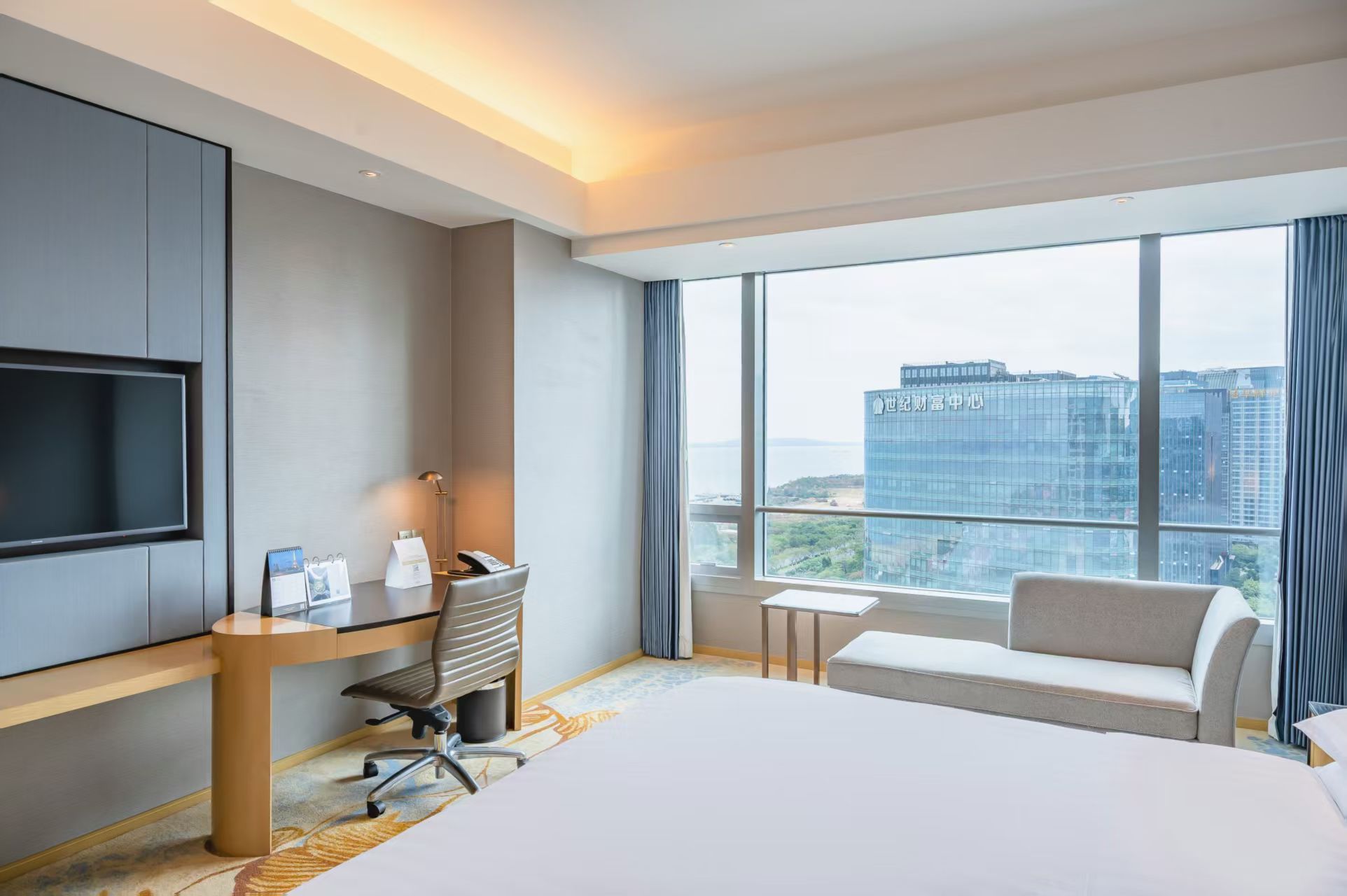 豪华阁海景大床房:180度全海景视野,可远眺金门风光,适合亲子出行。
