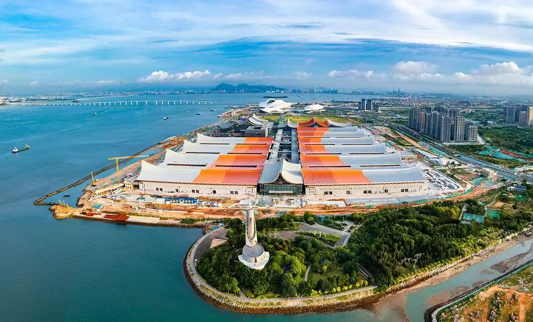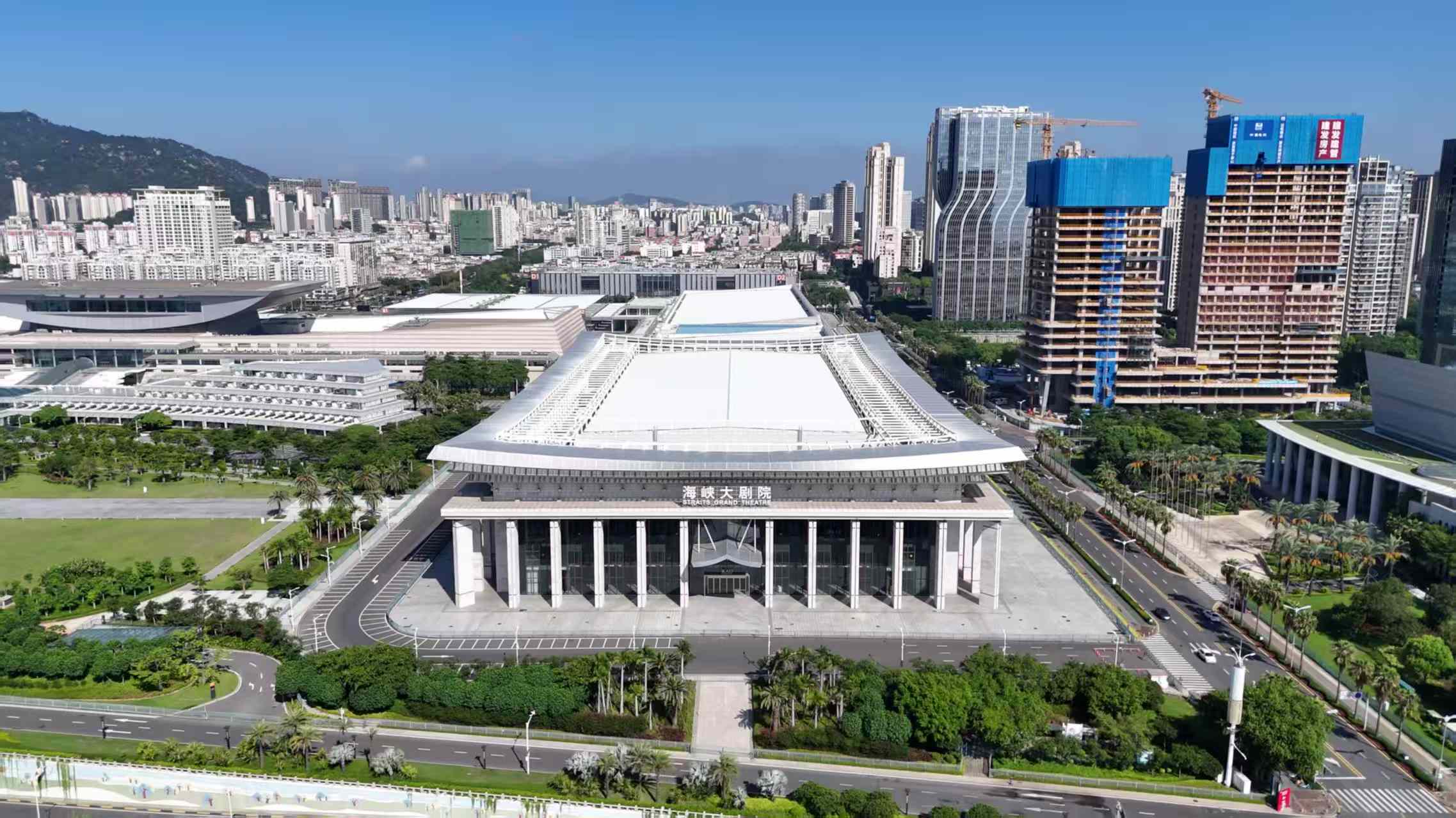 毗邻厦门国际会展中心、闽南大戏院等商务文化场所。厦门国际会议展览中心由主场馆、厦门国际会展酒店、厦门国际会议中心、厦门海峡大剧院四部分组成剧院建筑融。合海派风格与闽南元素,采用银白色三角镂空外墙与红色装饰相结合的设计,搭配半开放式玻璃幕墙提升采光效果。大剧场设有1497座"鞋盒式"观众席,配置"品"字形主舞台及六块升降台,混响时间达1.6秒国际标准;小剧场采用活动看台座椅,最大容量217座。